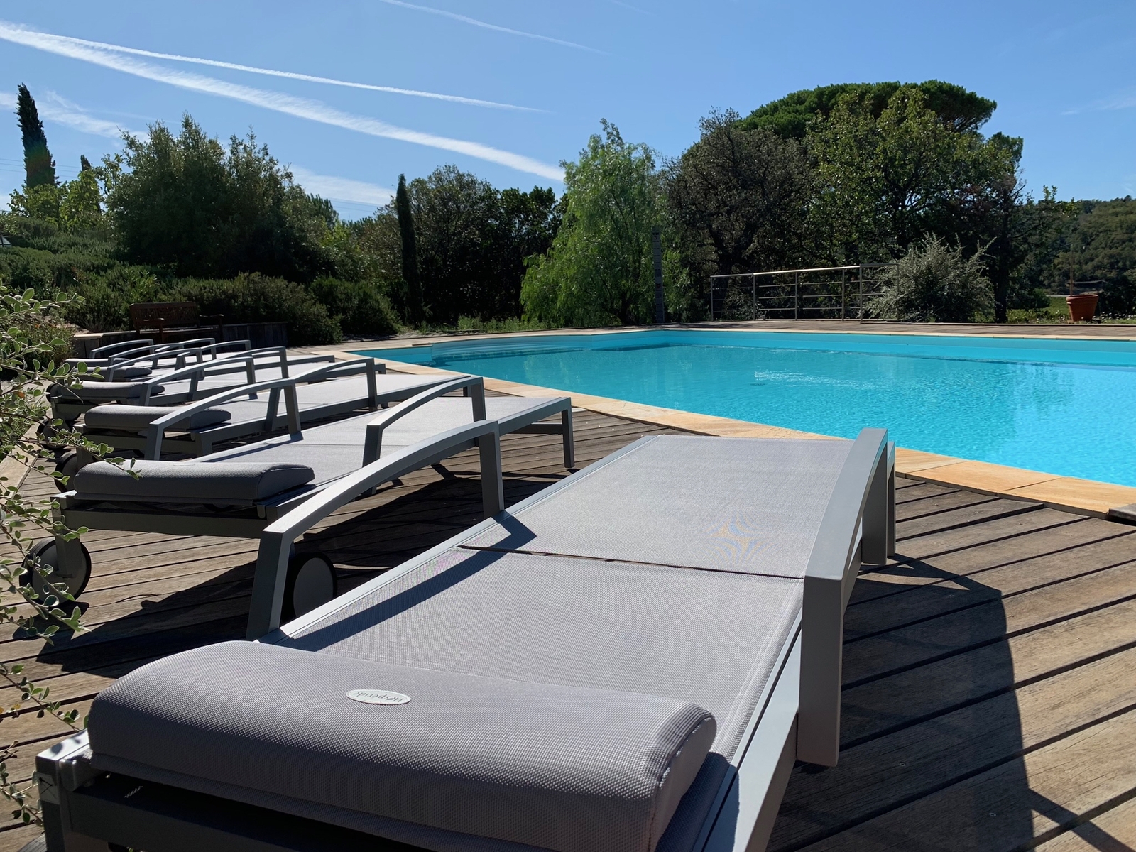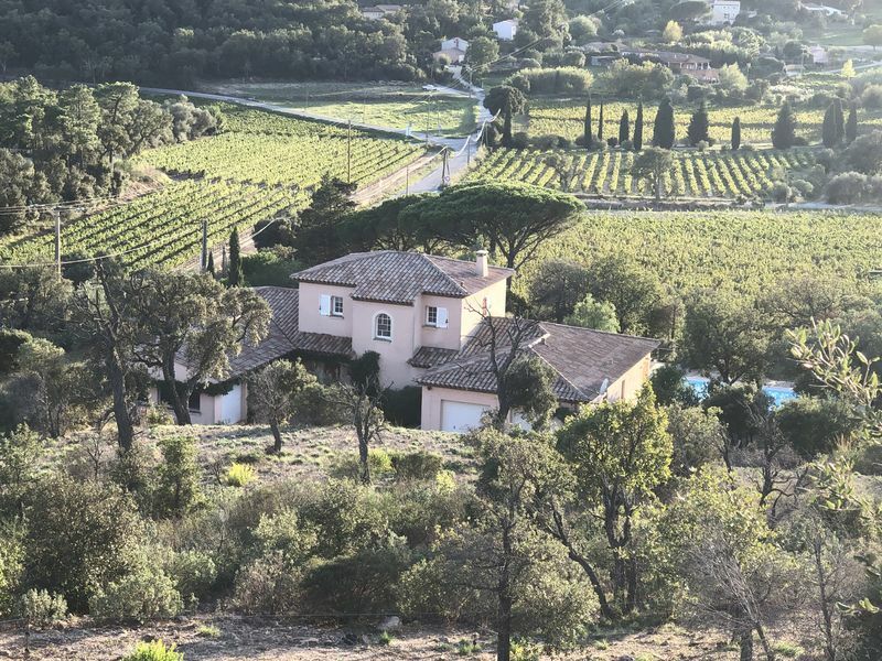Grande villa avec piscine chauffée au sein d'une grande propriété arborée. Moderne bien orientée et calme entourée de vignes. Entourée de vignes de forets. Vue sur la mer.