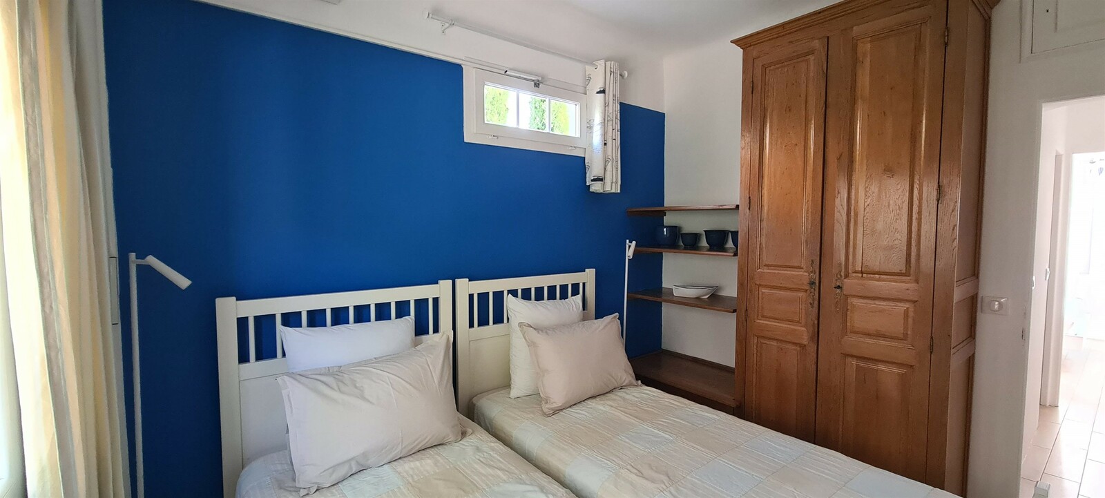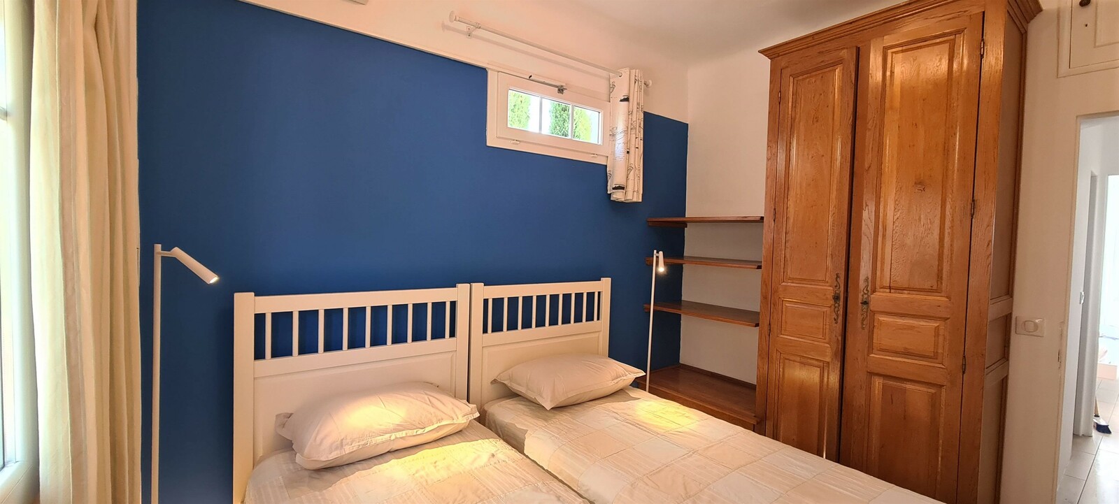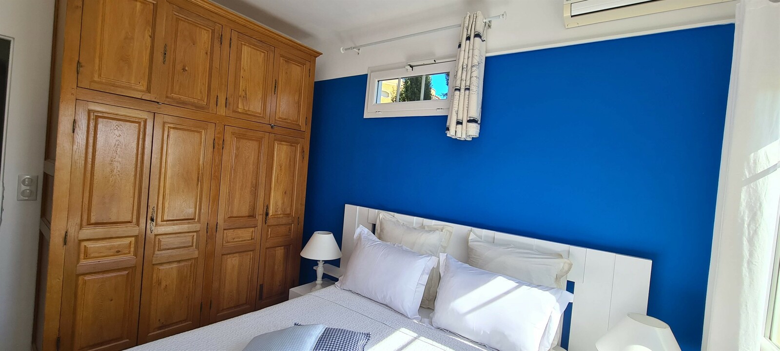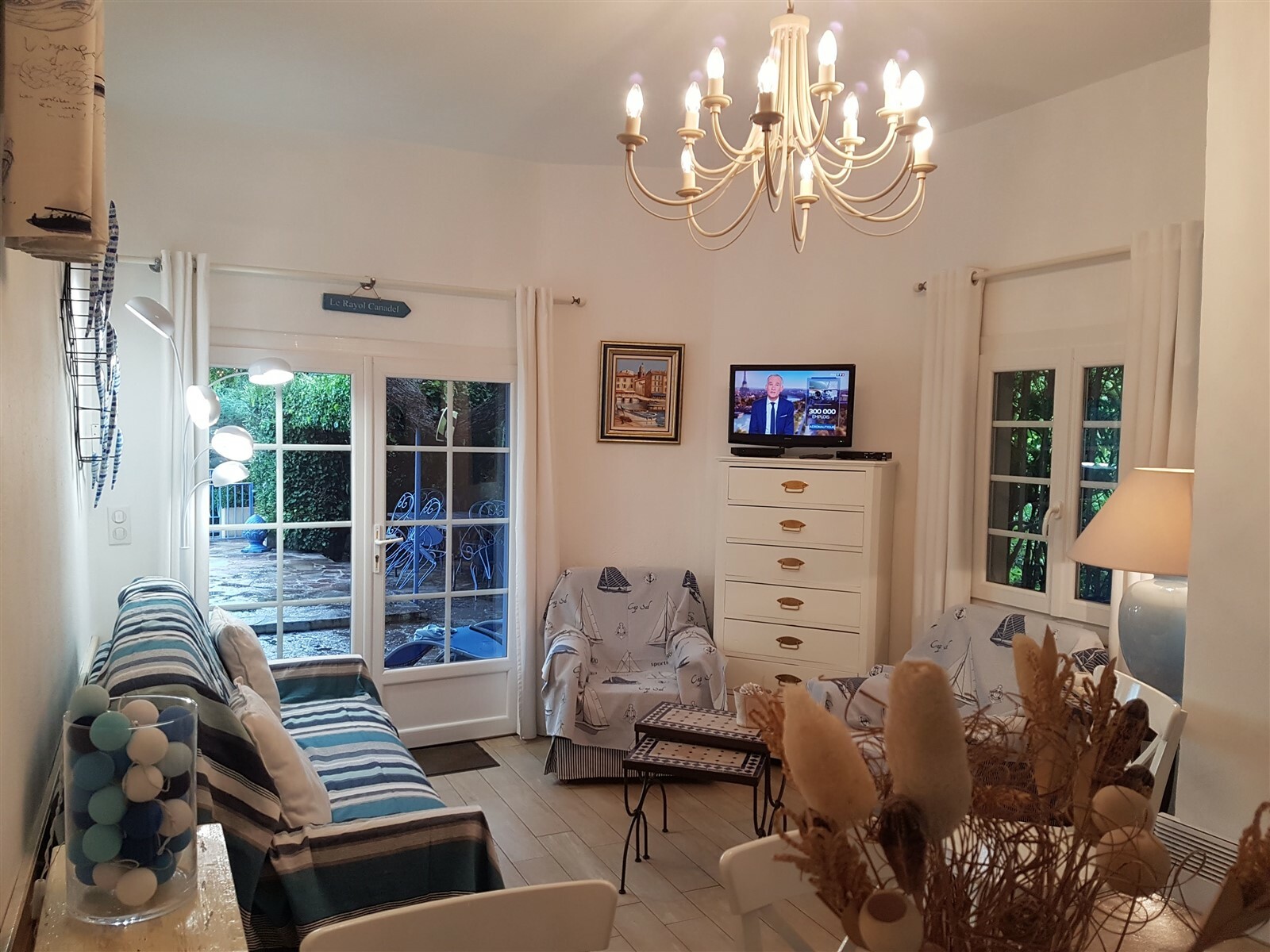 Villa avec une vue mer exceptionnelle de 60 m2 pour 4 à 6 personnes décorée aux couleurs de la mer. Entièrement clôturée avec petit jardin ombragé. Garage fermé.