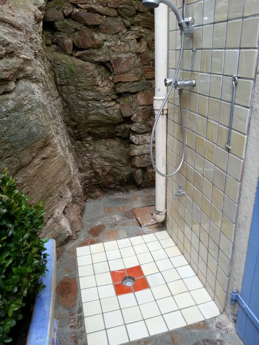 A l'extérieur, douche extérieure, jardin et terrasse avec barbecue électrique. et salon de jardin.