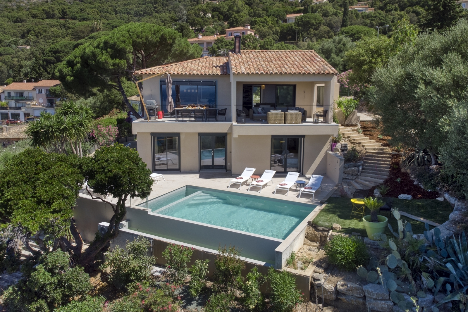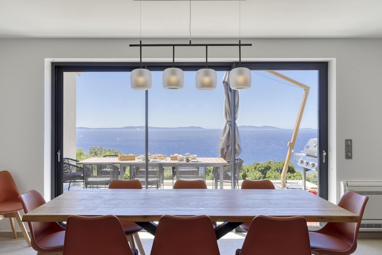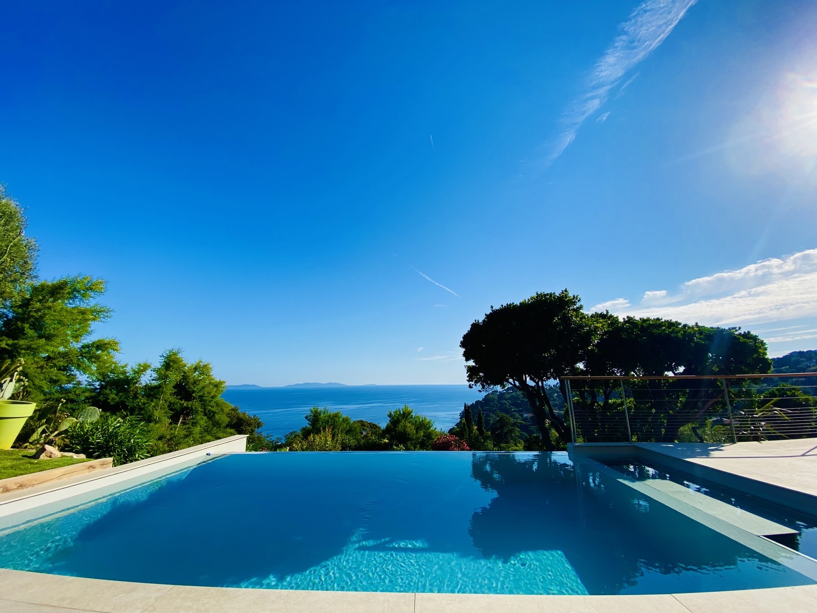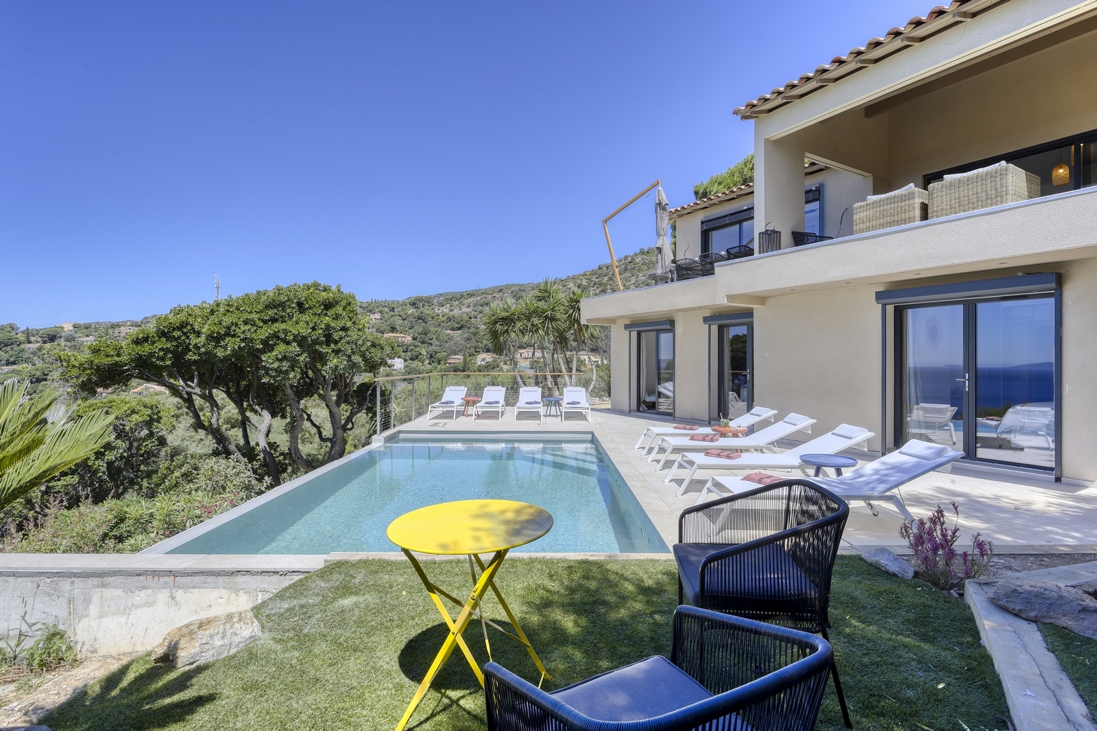 Villa de 5 chambres parfaitement équipée et de haut standing. En face des Îles d'Hyères et orientée sud, la vue mer est spectaculaire.