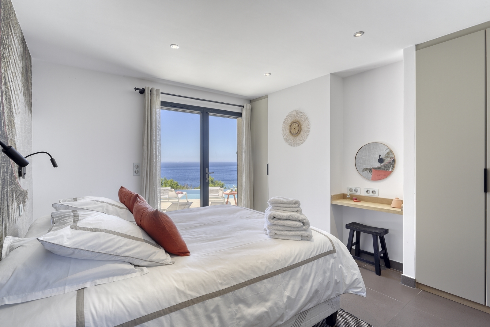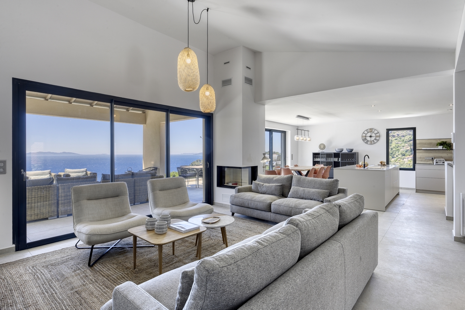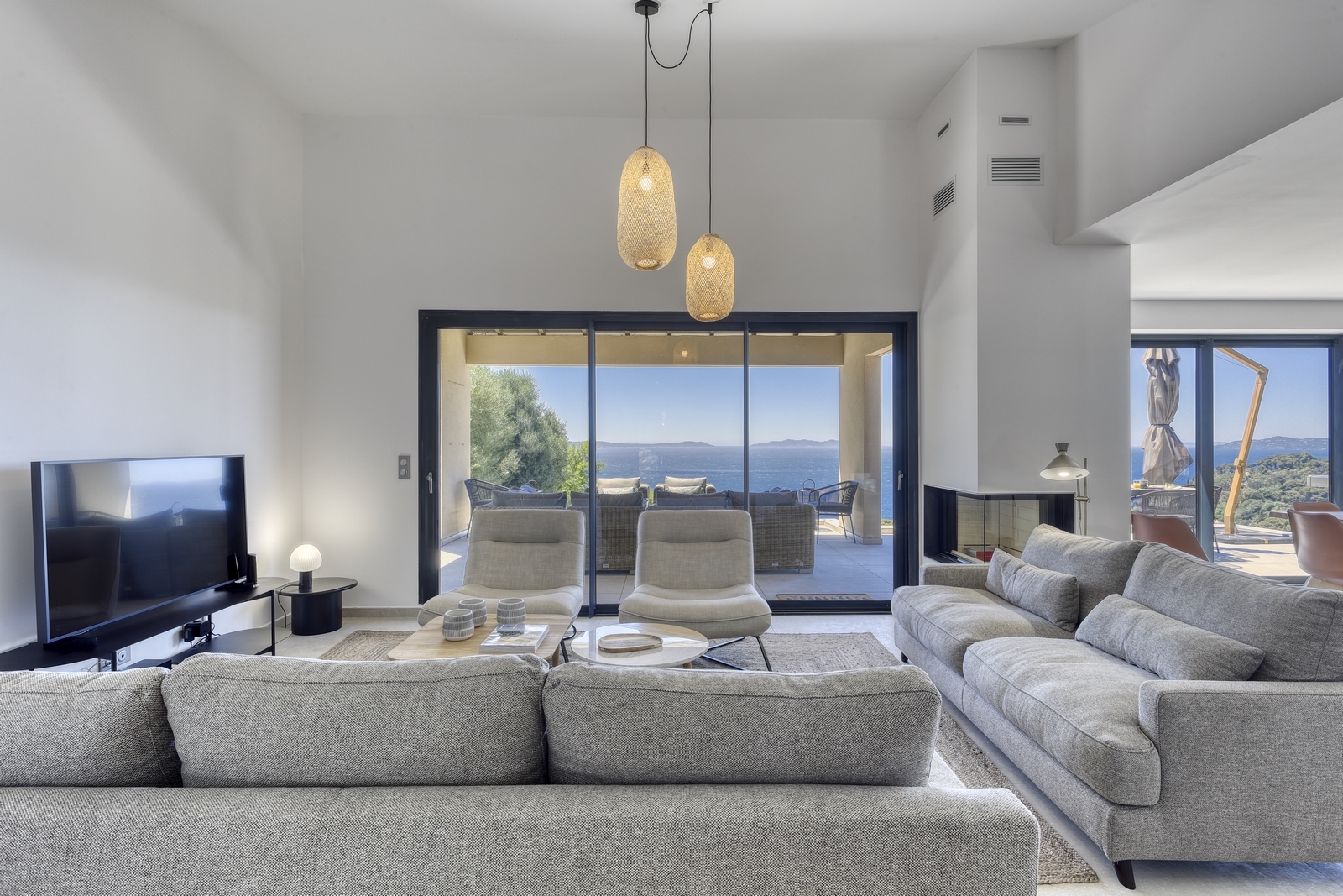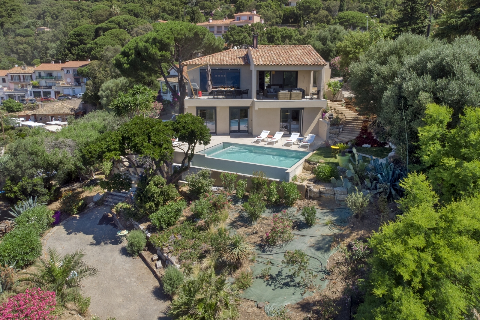 Villa de 5 chambres parfaitement équipée et de haut standing. En face des Îles d'Hyères et orientée sud, la vue mer est spectaculaire.