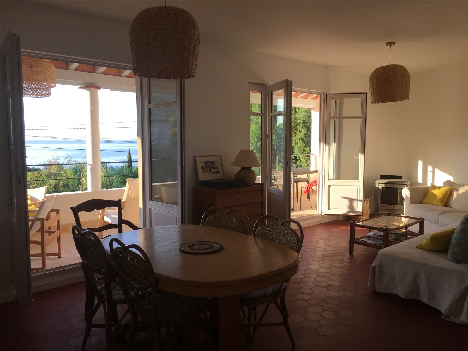 Notre maison (130m2) est située à 100m de la plage du Canadel. Elle est sur 2 niveaux. Il y a 4 chambres et peut recevoir 10 personnes. La grande pièce à vivre donne sur une grande terrasse (15 m2 environ) avec une superbe vue sur la mer . Ideal pour 2 familles.