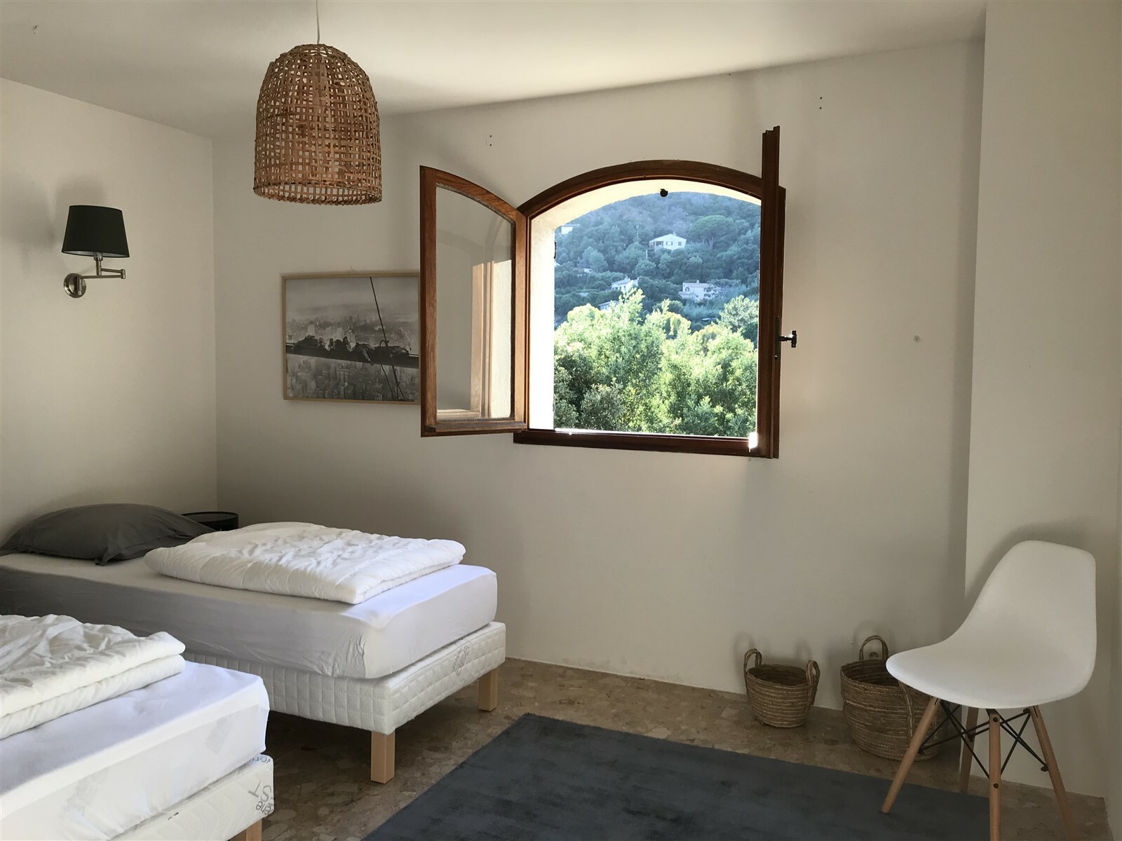 Jolie maison entièrement redécorée de plus de 200 m2, proposant 5 chambres, 2 salles de bain, une piscine de 9x3m et à 300 mètres de la jolie plage de Pramousquier. La maison est idéale pour 2 familles, elle permet d'aller sur la plage à pieds en 7 mn, en bas de la colline du Rayol et près du sentier piétonnier, tout est possible à faire à pieds!.
