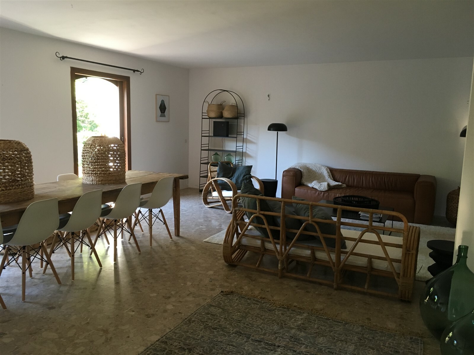 Elle offre un grand séjour de plus de 50 m2, une cuisine complètement équipée, four, plaques électriques, micro-ondes, lave vaisselle et grand frigo avec congélateur. (2ème frigo dans la buanderie). Il y 2 chambres avec un grand lit de 160 cm, 2 chambres avec 2 lits de 80 cm qui peuvent être séparés ou rapprochés pour faire un grand lit, et une chambre avec 4 lits superposés, toute la literie est neuve et de bonne qualité. Les chambres sont grandes, lumineuses et avec des rangements. La maison dispose de 2 salles de bains avec douche et baignoire et de 3 WC. Il y a une buanderie avec un lave linge, un lit bébé et une chaise haute.