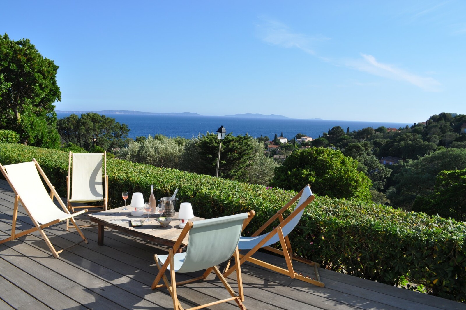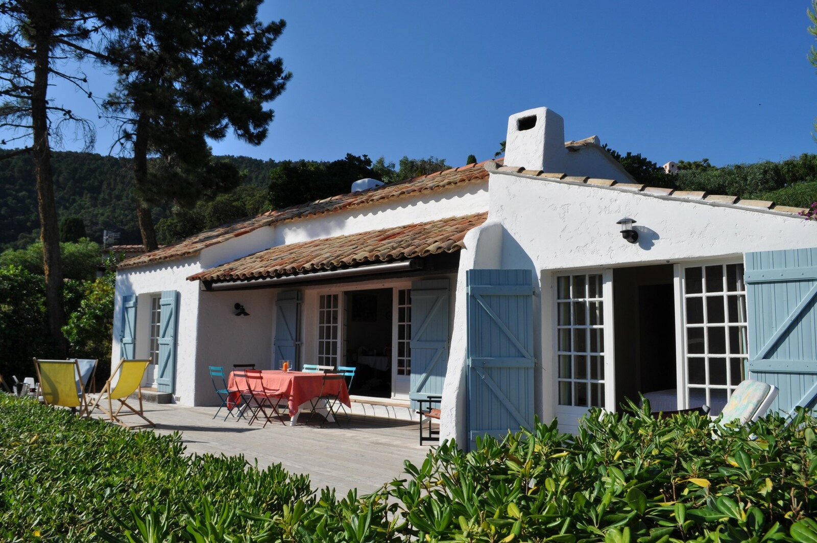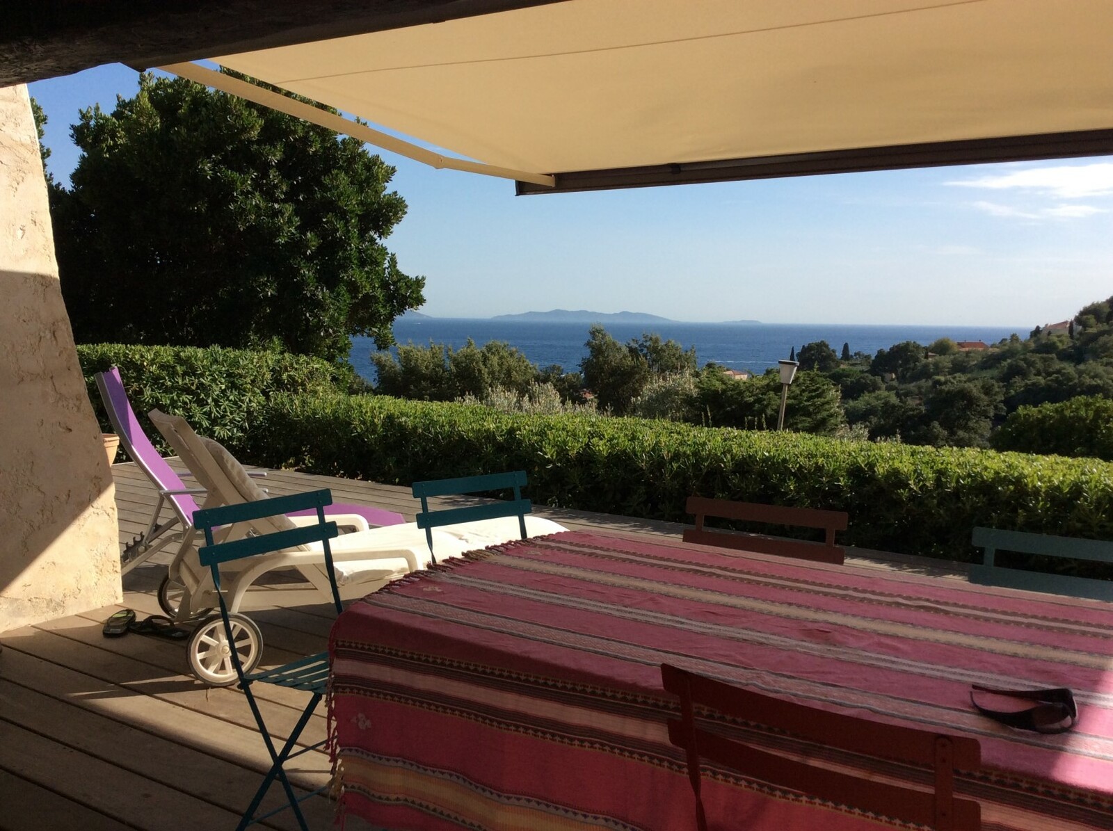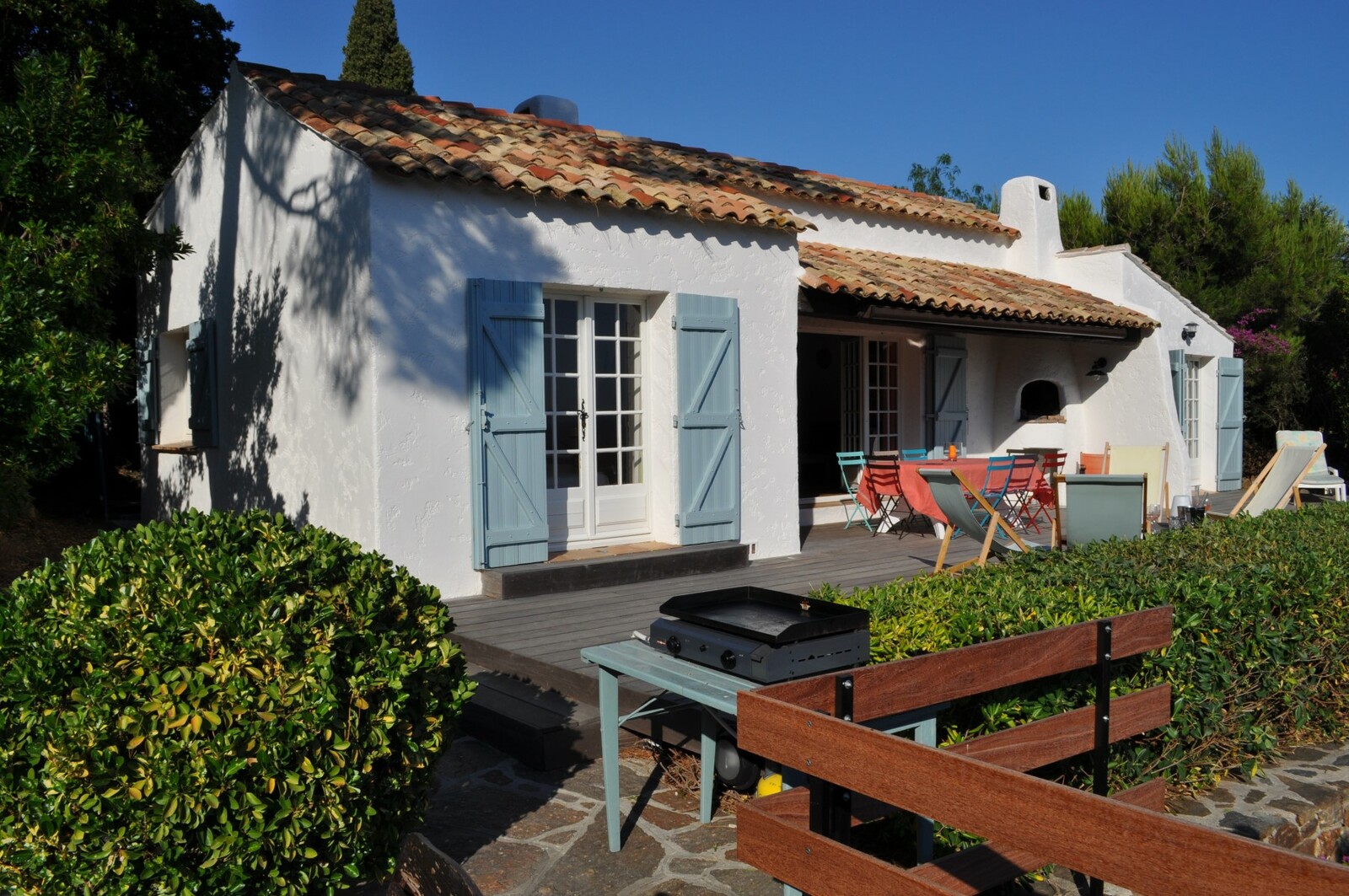 Charmant Mas de plein pied au calme, à 7 minutes à pied de la plage du Canadel, grande terrasse avec vue panoramique sur la mer et les îles d'or.
