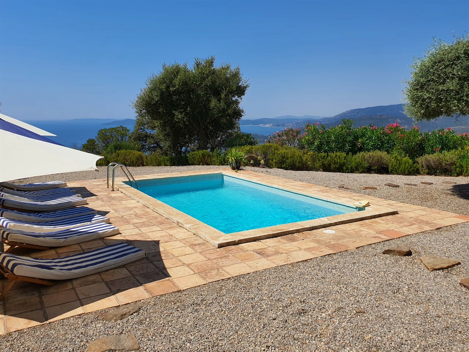 Grande villa avec piscine se situant dans une impasse surplombant le village du Rayol , face à la mer et aux îles d'or.