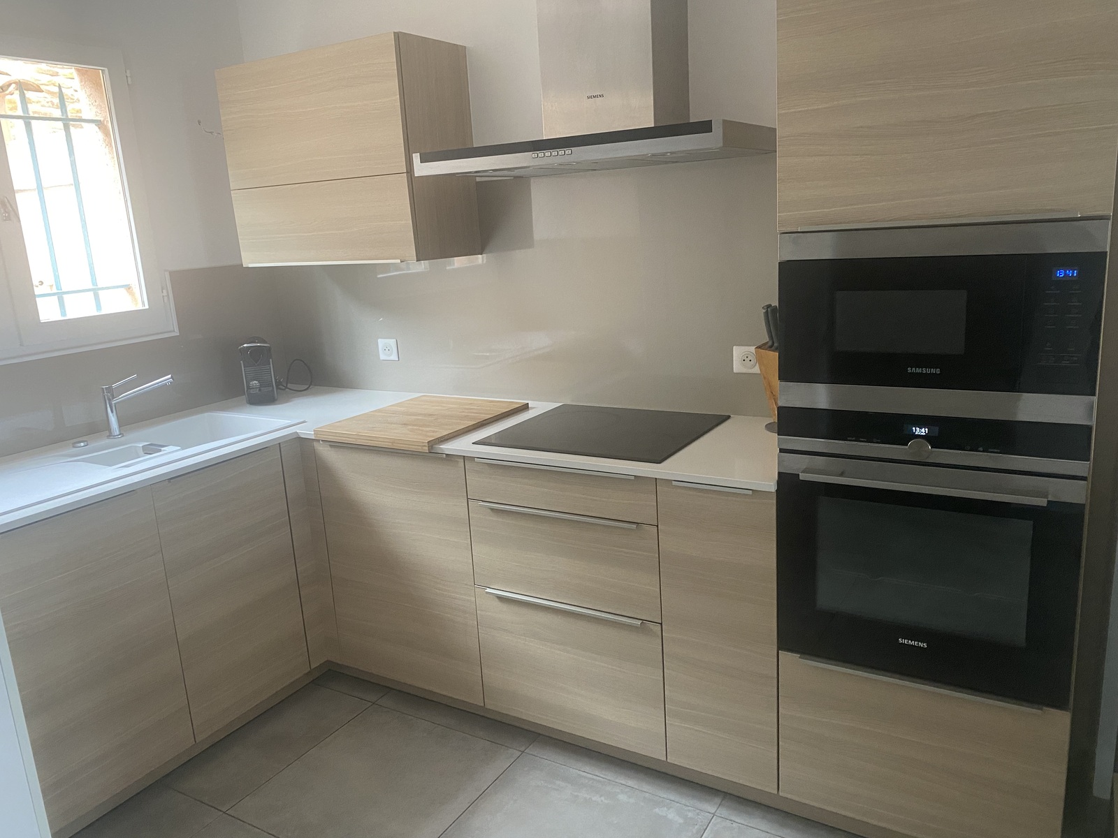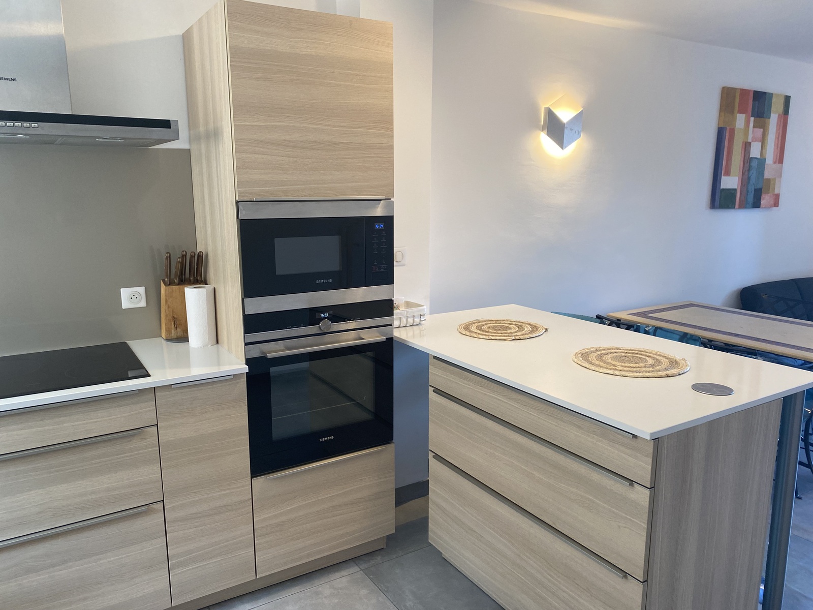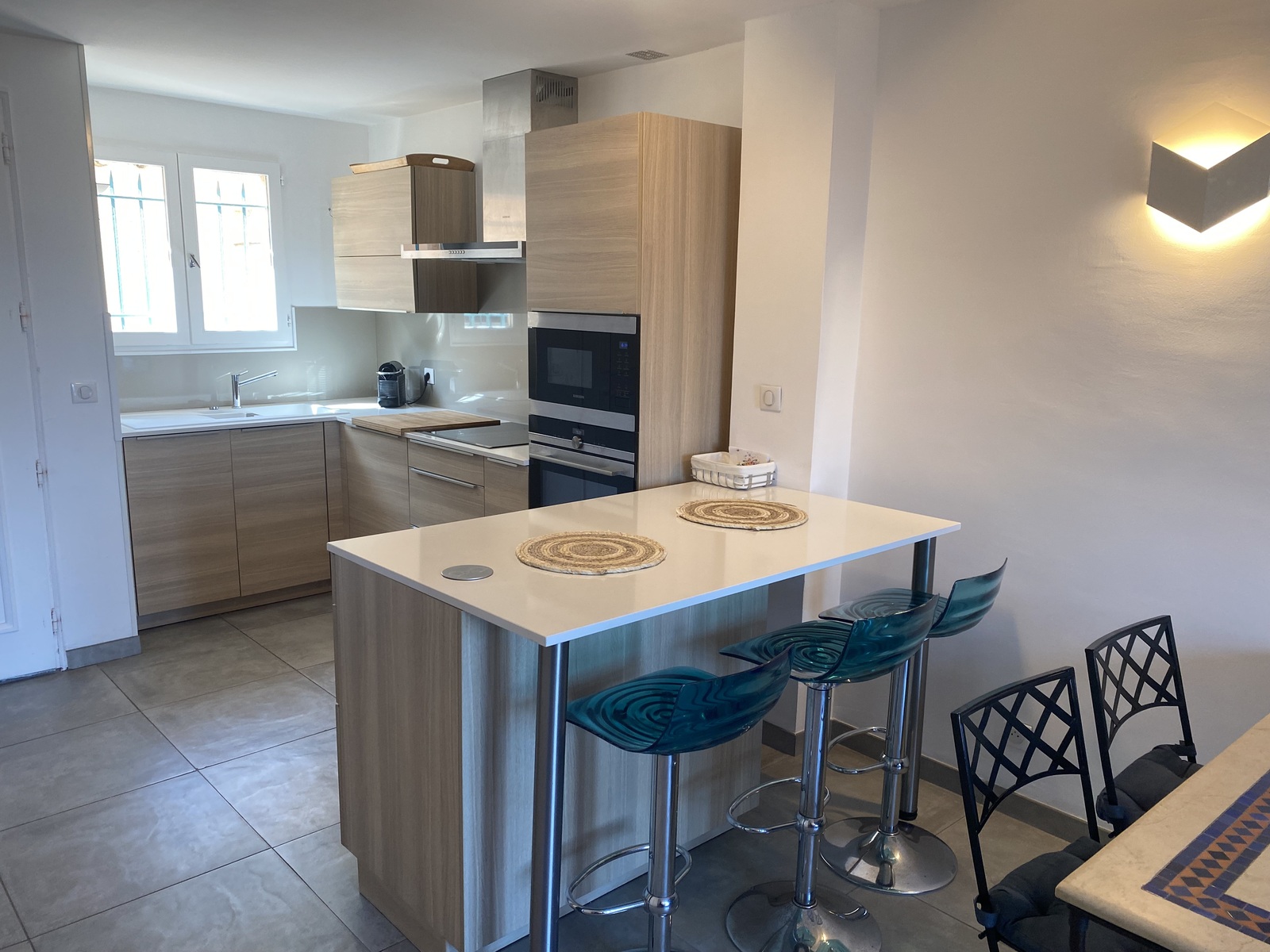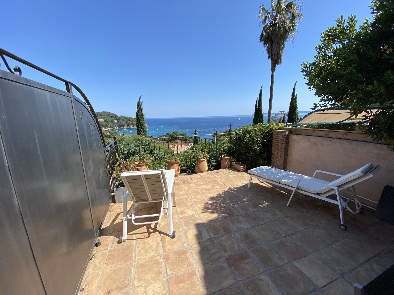 Jolie villa de 80 m2 bien équipée, agréable avec terrasse offrant sans vis à vis, une vue exceptionnelle sur la mer, la baie de Canadel et les îles d'or à 250 m de la plage du Canadel.