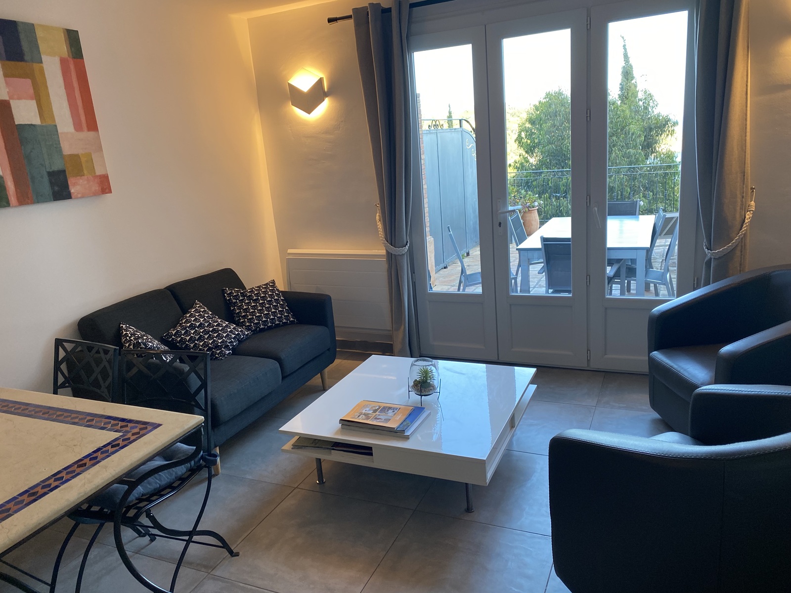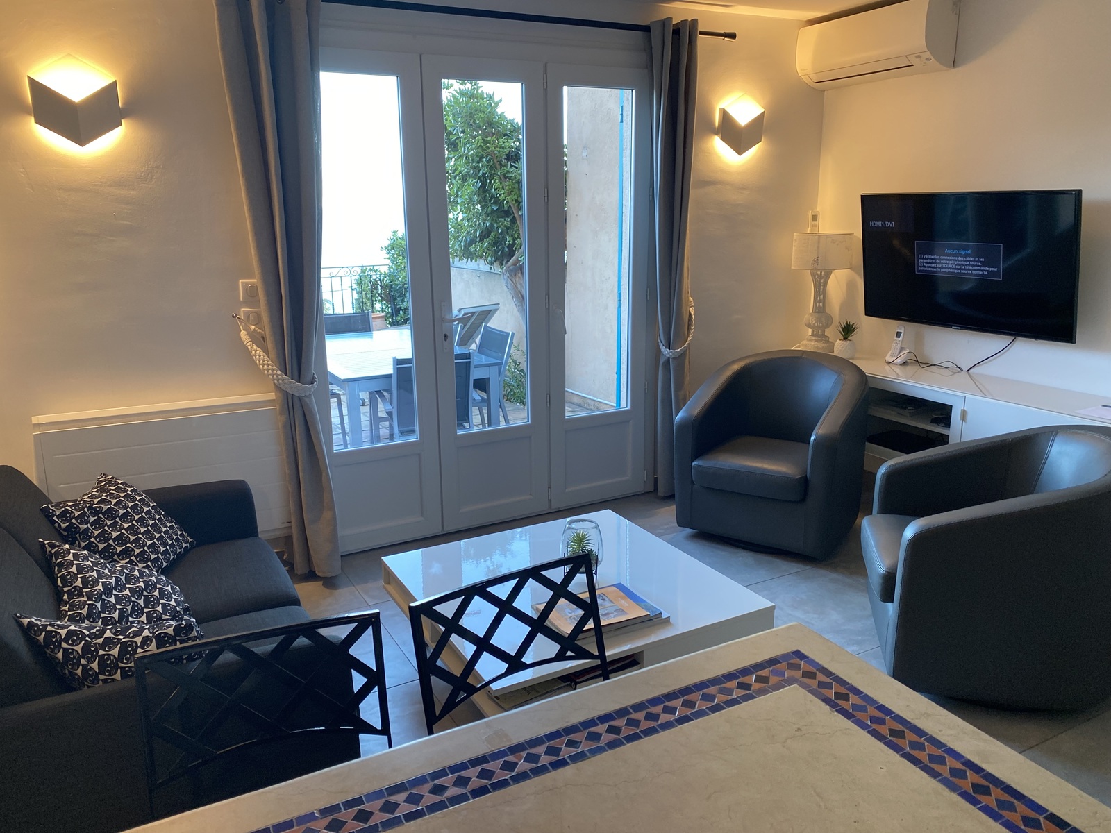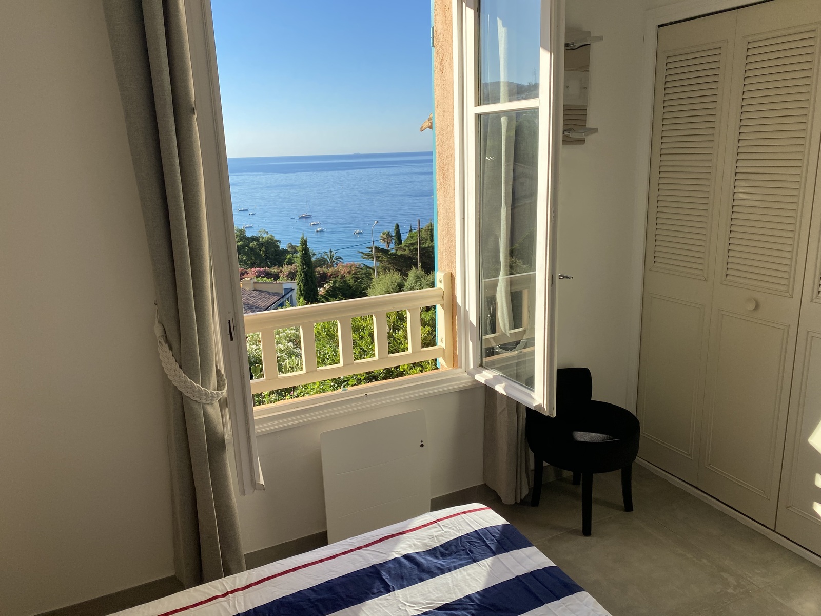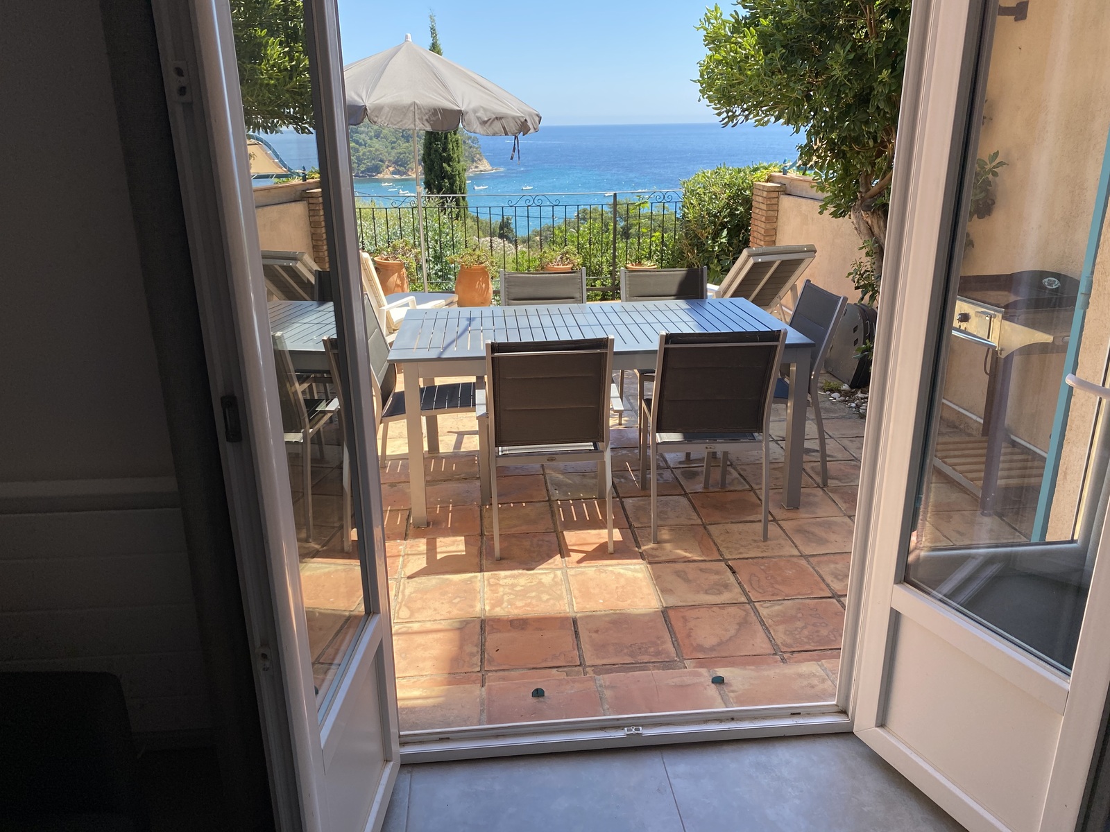 Villa bien équipée, agréable avec sa jolie terrasse à 250 m de la plage du Canadel, nichée dans une copropriété , fermée comportant 5 villas, accès par des escaliers, maison de bon standing mitoyen et sans vis à vis, avec une vue exceptionnelle sur la mer, la baie de Canadel et les îles d'or depuis la terrasse et la chambre 1, accès à la plage par des escaliers puis en traversant la route côtière. Situé entre St Tropez(25km) et Lavandou (10km) au cœur du golf, au pied de la corniche des Maures, à 2km des commerces du village du Rayol. La propriété possède un garage pour rangements ou pour une voiture moyenne de moins de 4,50 mètres, les 3 places de parking intérieur ne sont pas privatives , on ne peut pas laisser en permanence la voiture dans la cour intérieure ( que ponctuellement pour décharger ou utilisation en fonction des besoins du moment de la demande ) On peut se garer sans problème Avenue de la corniche le long de la copropriété.Située dans le Var au Rayol - Canadel -sur -Mer dans le Var vous passerez de superbes vacances au bord de la mer et profiterez d'une vue à couper le souffle sur la Méditerranée et le littoral varois rocheux.