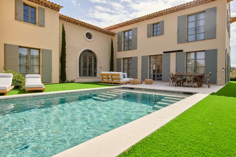 Équipements : 7 chambres dont 5 suites, 7 salles de bain, 8 WC, piscine chauffée avec nage à contre-courant, salle de sport Technogym, sauna traditionnel, salle de cinéma, cuisine La Cornue, cave à vin, chauffage au sol, climatisation réversible dans chaque pièce, système audio Devialet, Apple TV et Internet haut débit.