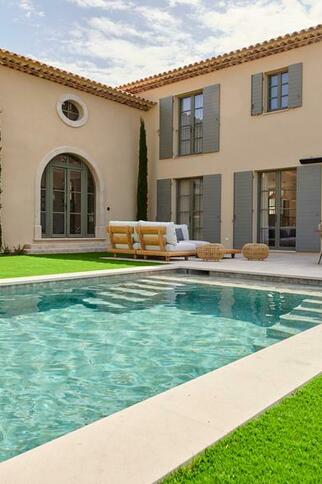 Cette somptueuse demeure de 450 m², inspirée des bastides provençales, allie luxe et élégance dans une ambiance à la fois cosy et raffinée.