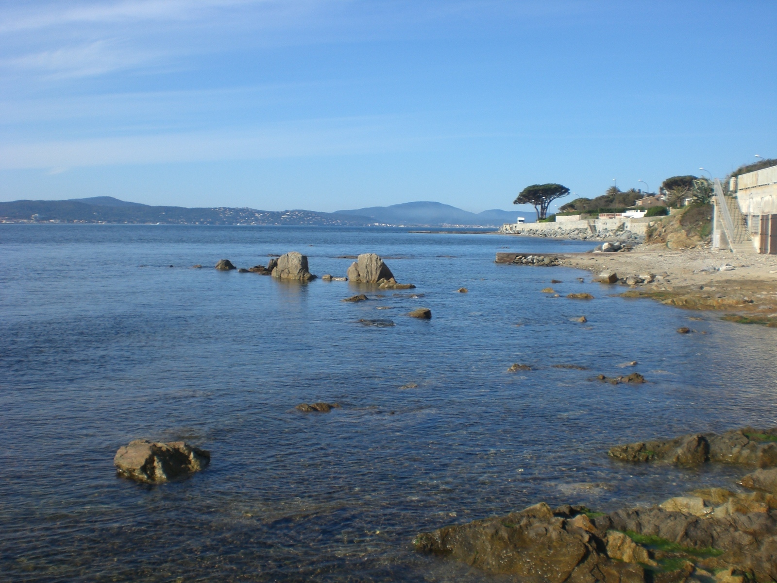 Situé juste derrière la route du bord de mer. Orienté plein sud avec vue directe face à la mer et Saint-Tropez du salon comme de la cuisine et aussi de la terrasse et du jardin. On est à 12 minutes à pied du centre. Deux chambres, une véranda, cuisine, salle de bain, salle à manger et salon avec tout l'équipement et le confort pour se sentir bien autant à l'intérieur qu'à l'extérieur. Calme, détente, dépaysement et activités marines ou citadines assurées.Accessibilité : Logement en rez-de-jardin avec deux marches d'entrée et deux marches pour accéder aux chambres, ne conviendra pas aux fauteuils roulants.