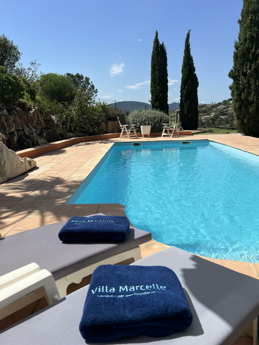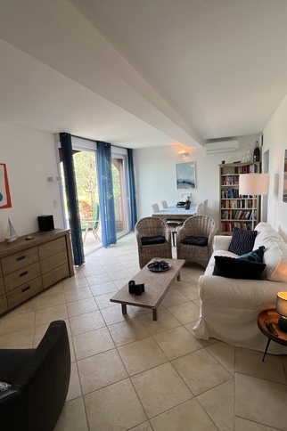Magnifique appartement entièrement rénové pour maximum 4 personnes. Agréablement situé au frais contre la montagne. Superbe vue sur le parcours de golf de Sainte Maxime avec au loin la baie de St. Tropez.