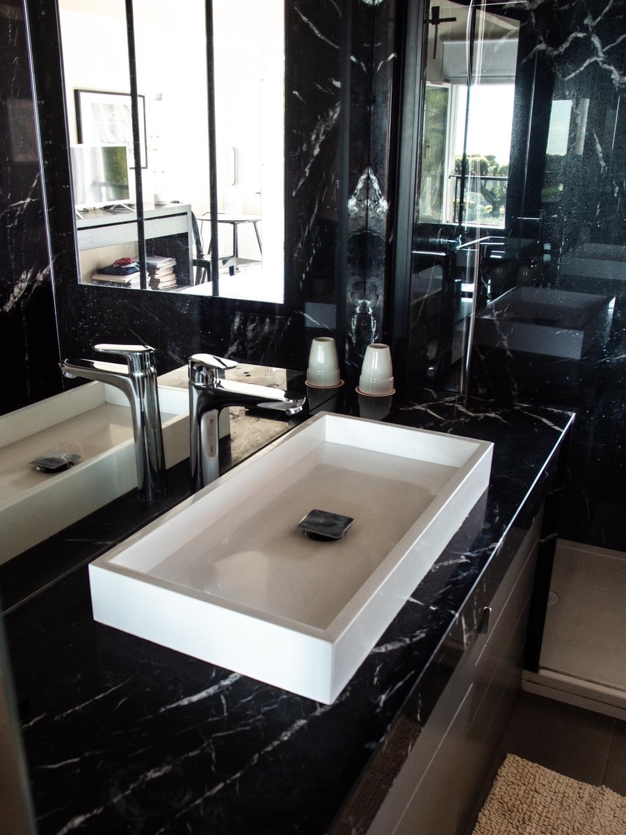 Les salles de bain sont éclairées par la lumière du jour et bénéficient aussi d’une jolie vue, tout comme la cuisine.