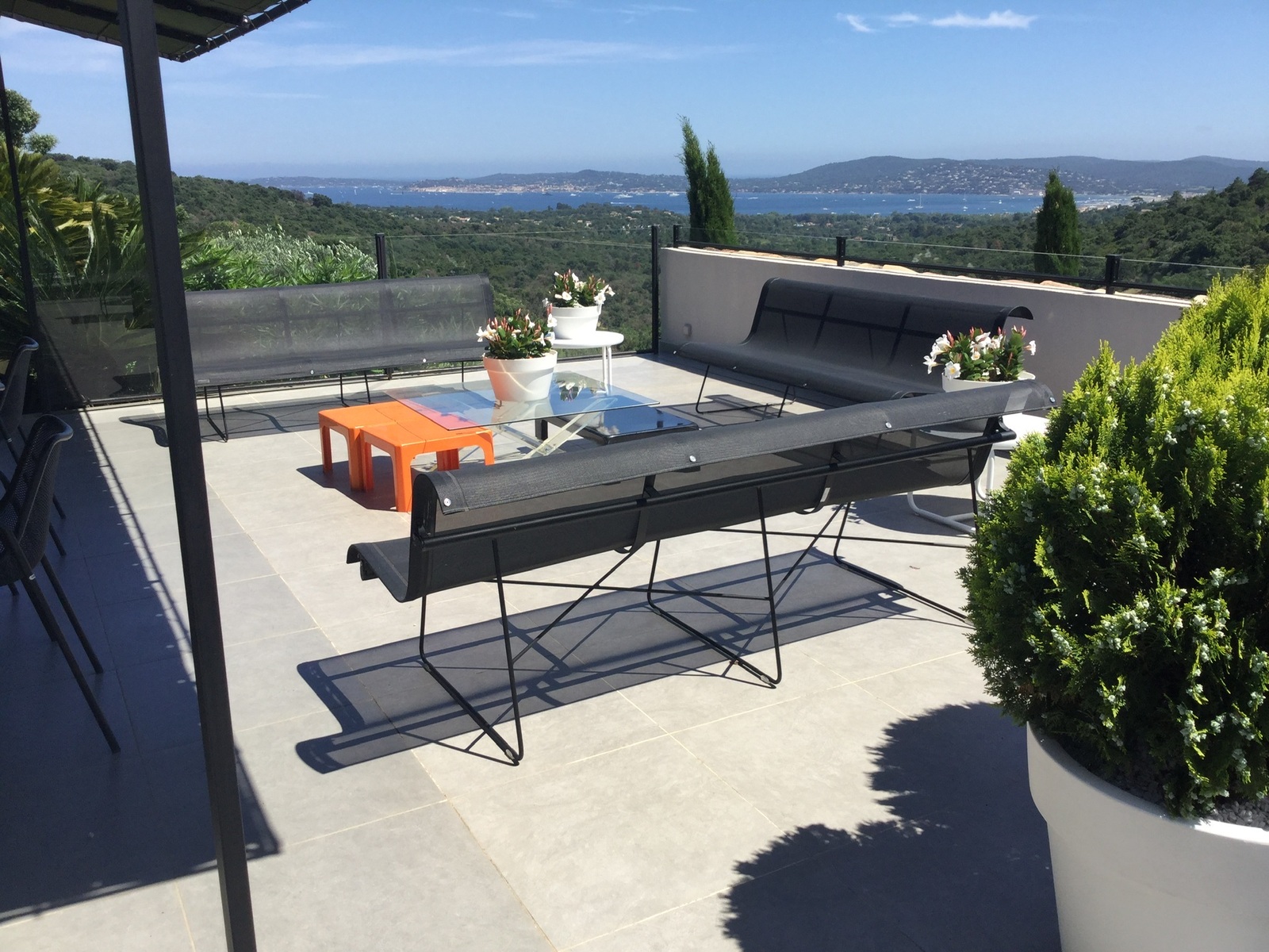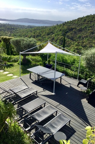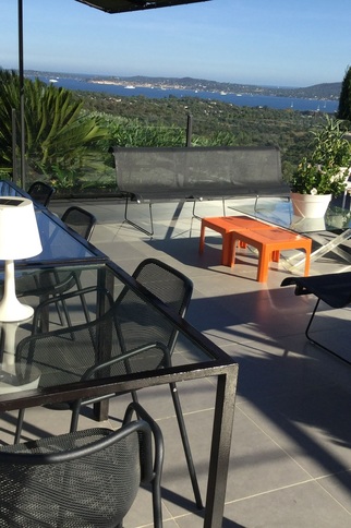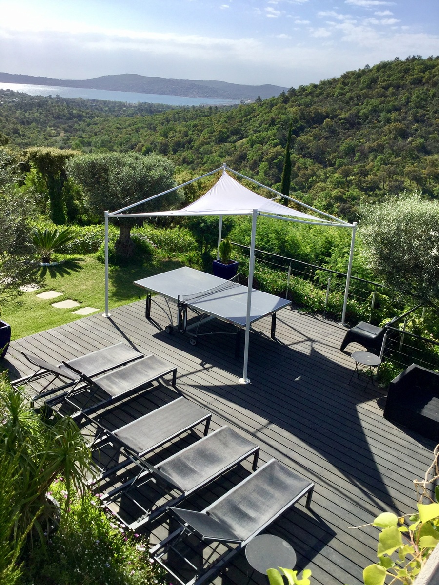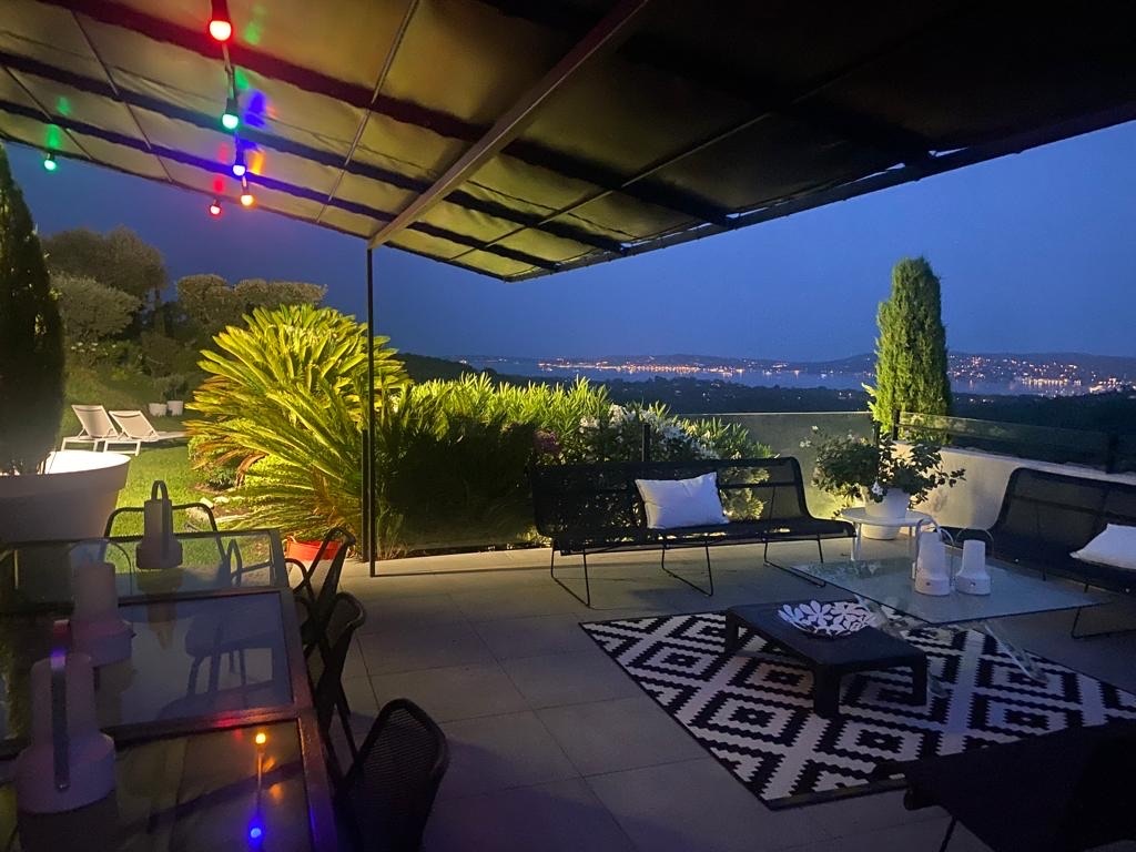 La maison jouit d'une magnifique vue sur le golfe de Saint-Tropez et ce depuis toutes les pièces. La vue est magique la nuit aussi car le golfe est illuminé.