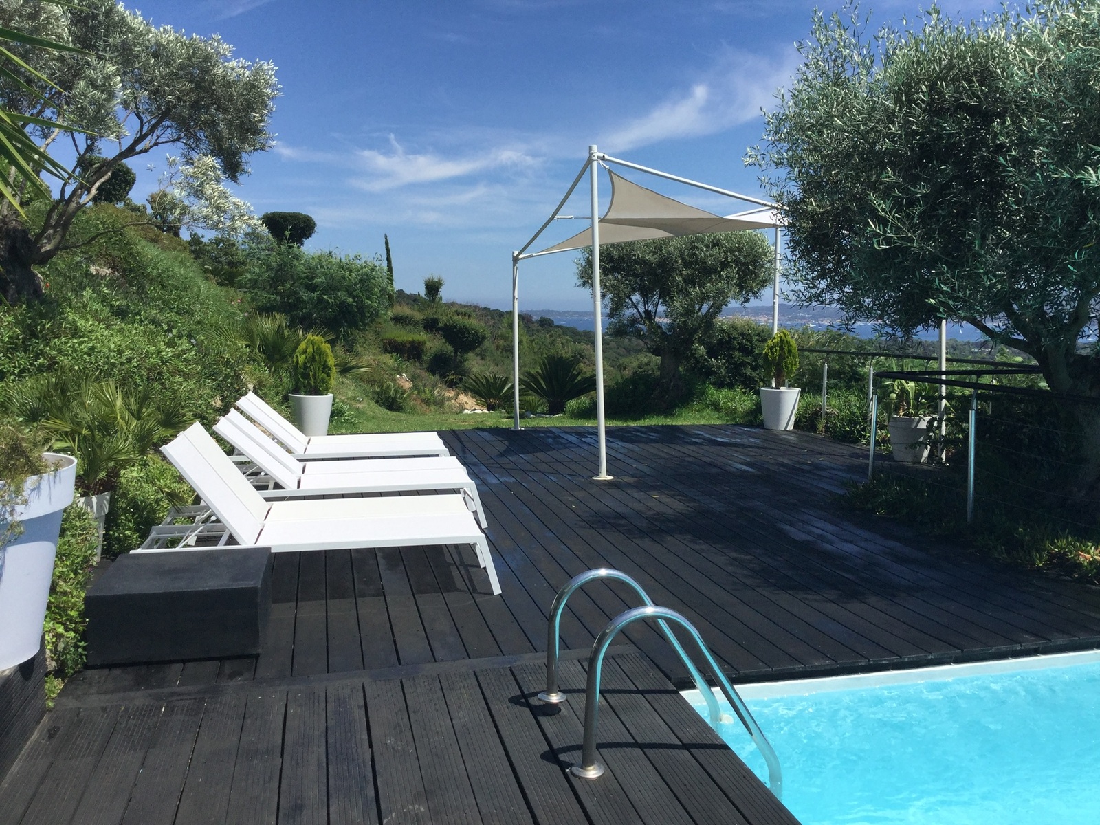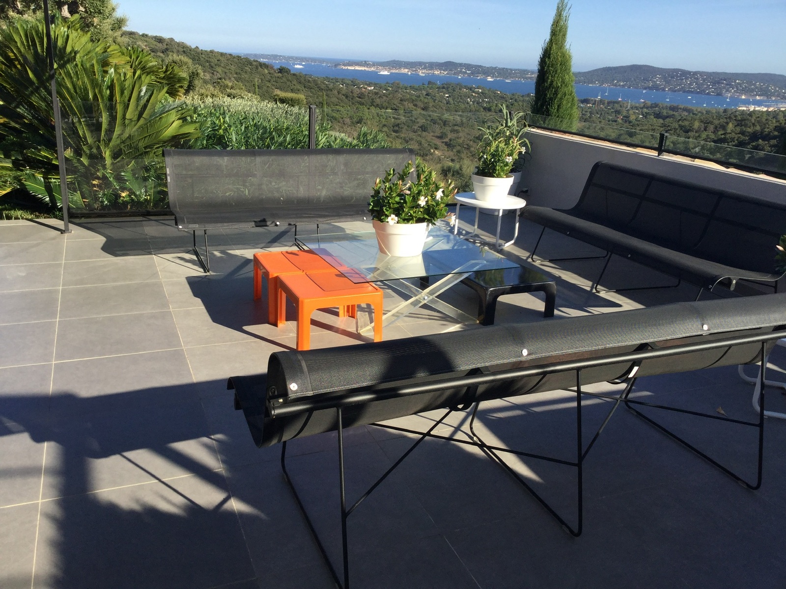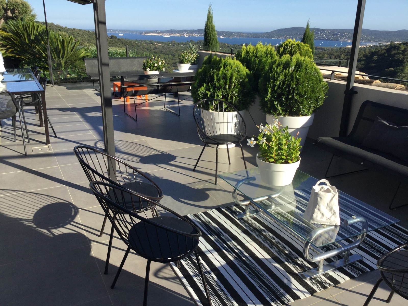 La maison jouit d'une magnifique vue sur le golfe de Saint-Tropez et ce depuis toutes les pièces. La vue est magique la nuit aussi car le golfe est illuminé.