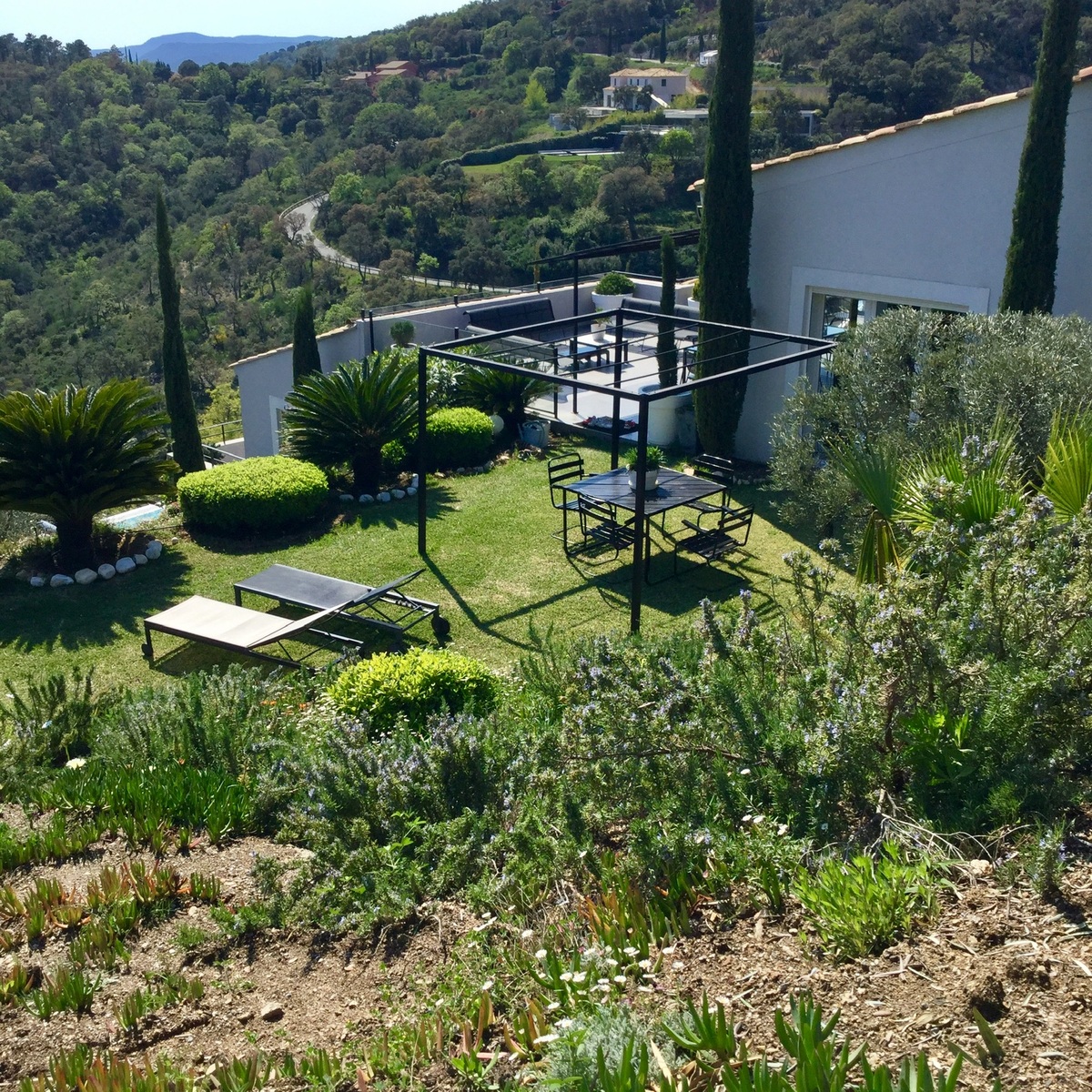 Située dans un magnifique jardin méditerranéen en restanques de 5000m2 au cœur d'un domaine privé clos, au calme, elle est très confortable, exposée au sud-Est, et équipée de la climatisation dans toutes les pièces.