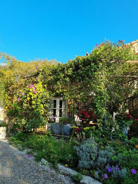 La cuisine américaine est ouverte sur la salle à manger et la terrasse/jardin.