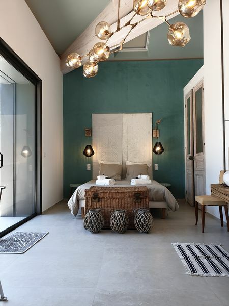 Le logement dispose d'une chambre avec un lit double de 160x200cm avec sa douche et ses toilettes, et une deuxième chambre avec 2 lits 90x200cm, sa douche et des toilettes invités