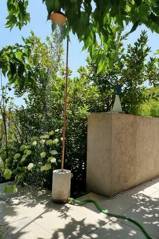 Le jardin est arrosé grâce à un réservoir d'eau de pluie de grand capacité.