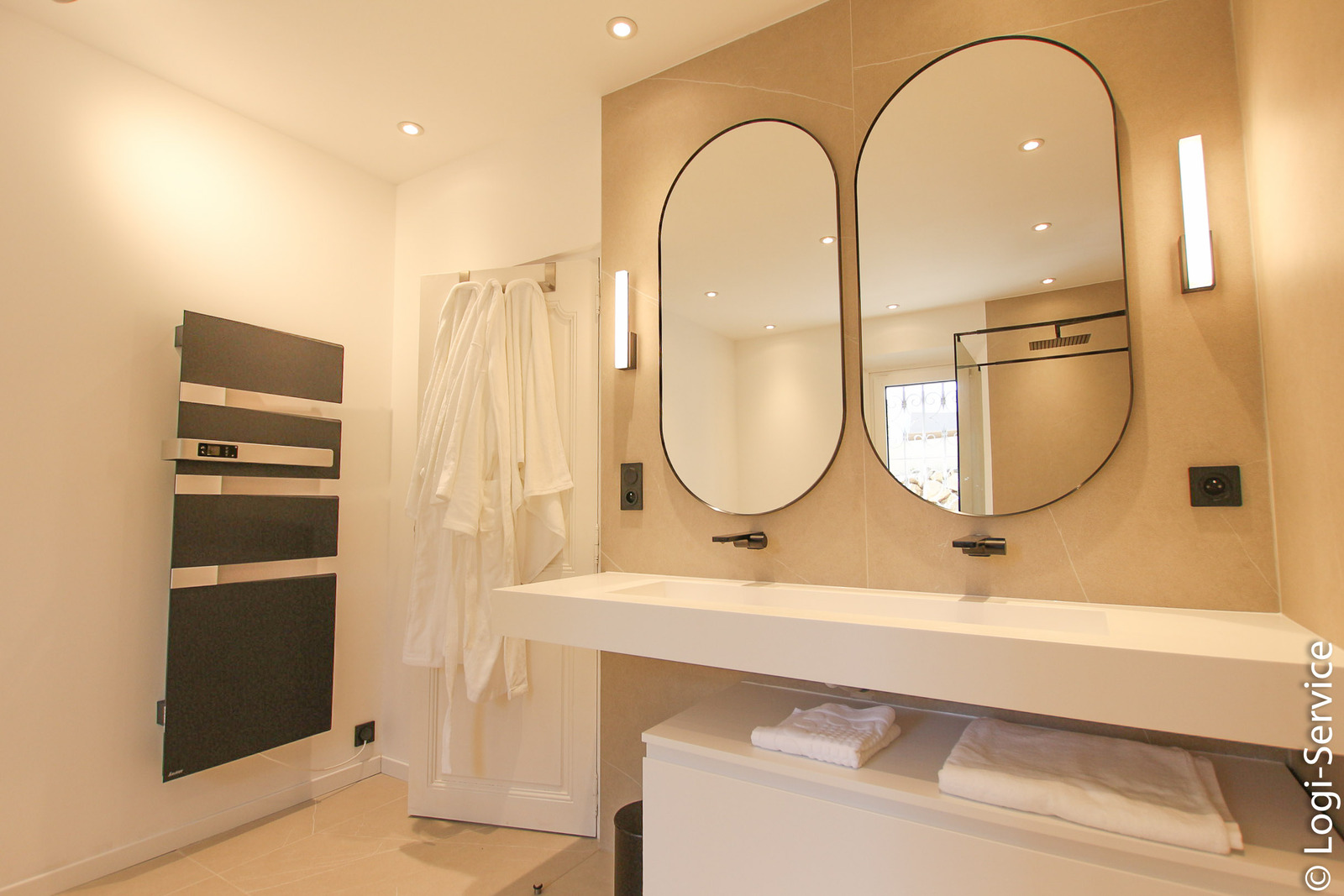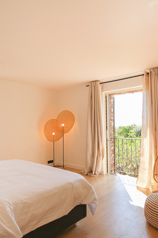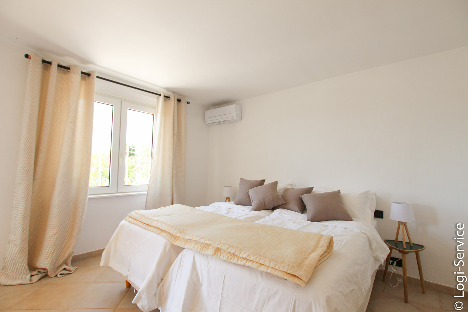 Au niveau supérieur, deux chambres en suite avec douches et un toilette séparé, Chaque chambre dispose d’un petit balcon, exposé Sud, vous permettant d’admirer la magnifique vue directement de votre lit.