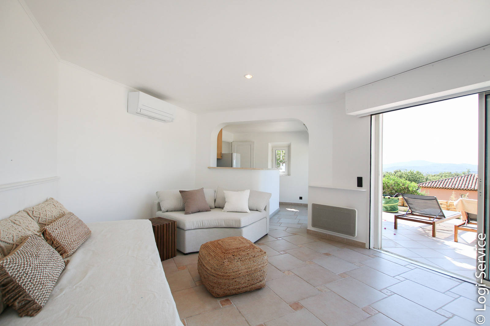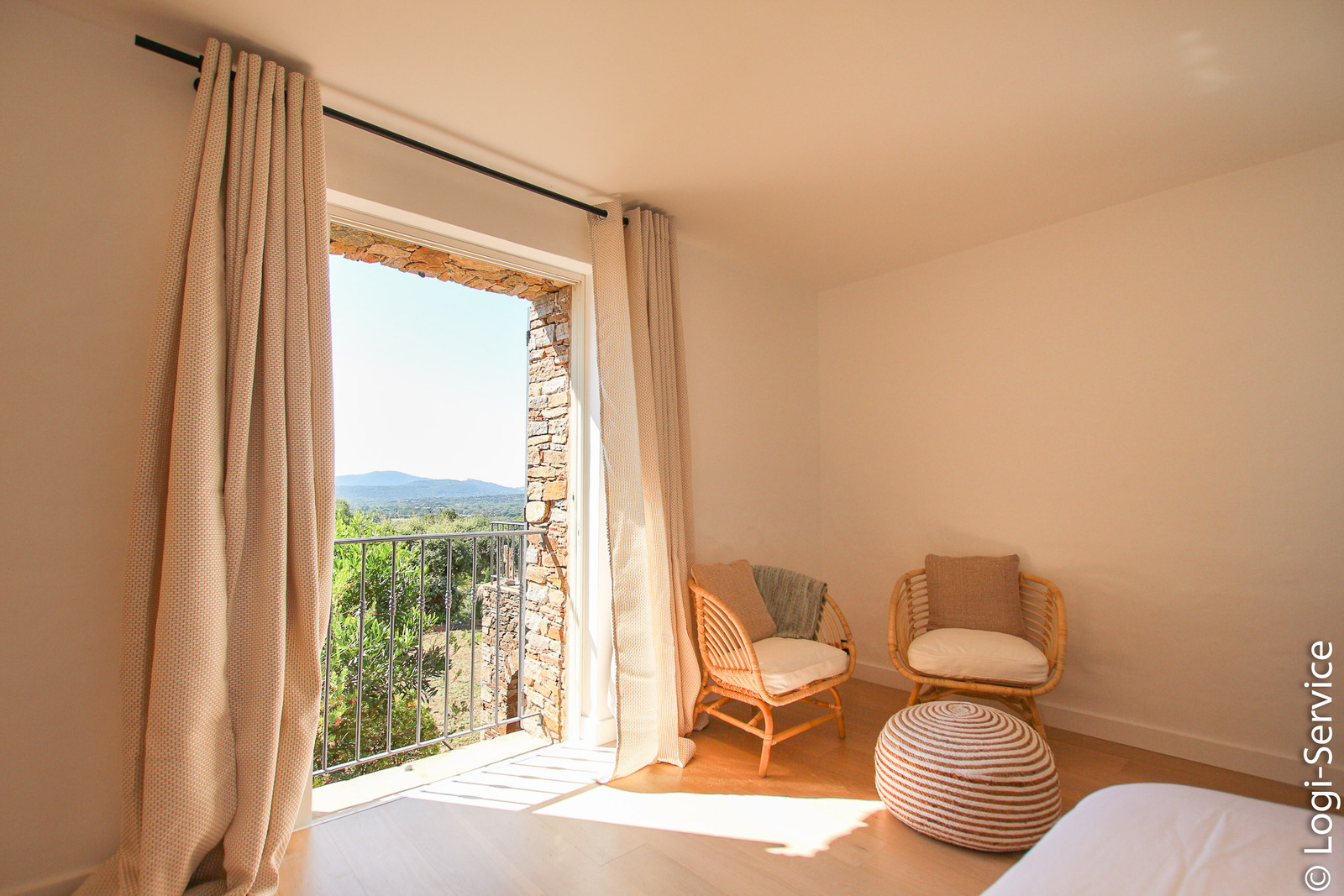 Idéalement placée, à moins de 4 km de Port Grimaud, 9 km de Sainte Maxime et 10 km de Saint Tropez, la Villa est entièrement climatisée et vous propose une vue mer et colline imprenable, une grande piscine en pierre de Bali avec nage à contre courant et un terrain de pétanque. Au rez de chaussée, vous trouverez une entrée avec toilette invité, un grand séjour avec un espace salle à manger, une terrasse couverte par un petit toit en tuiles avec salon d'extérieur et une table à manger, un patio avec une fontaine, une cuisine entièrement équipée, une buanderie, une chambre à coucher, un dressing, un toilette séparé et une salle de bains avec douche.