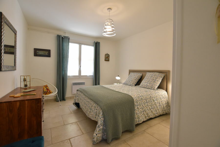 Logement situé au rez de chausée d'une belle villa provençale. Deux grandes chambres, salle de bain, grand salon avec cuisine et terrasse abritée de 15m2. Place de parking et accès libre au grand jardin méditerranéen.