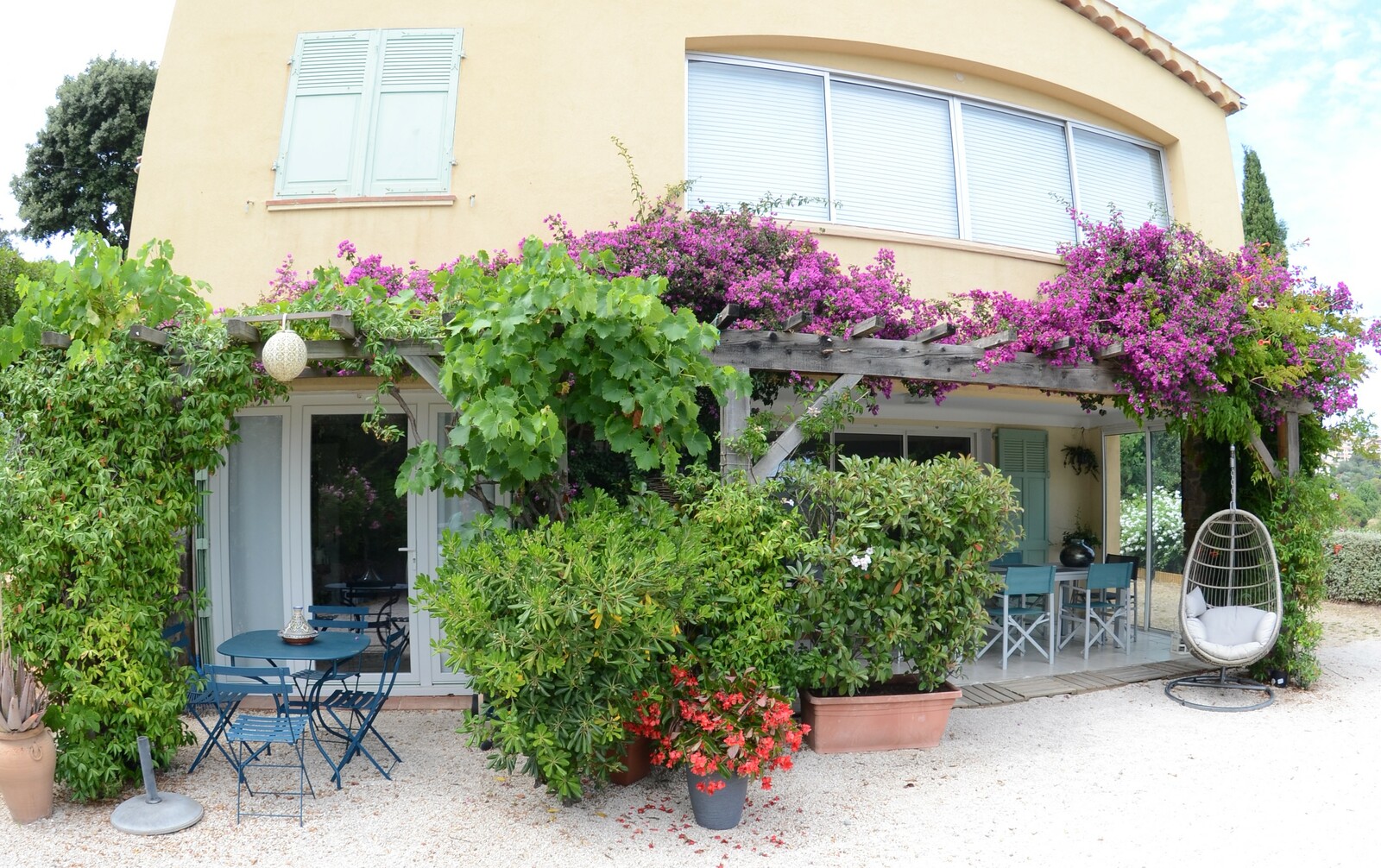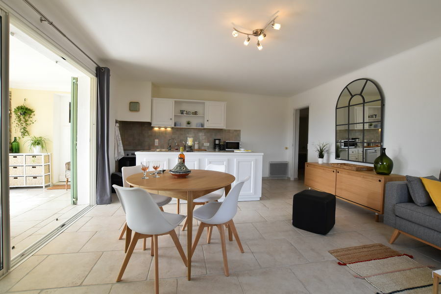 Très beau logement situé au rez de chaussée d'une belle villa provençale, avec terrasse couverte et jardin privé. Il comprend 2 grandes chambres, une salle de bains, un grand salon et cuisine équipée ouvrant sur une terrasse abritée de 15 m2. Accès libre au grand jardin méditerranéen.