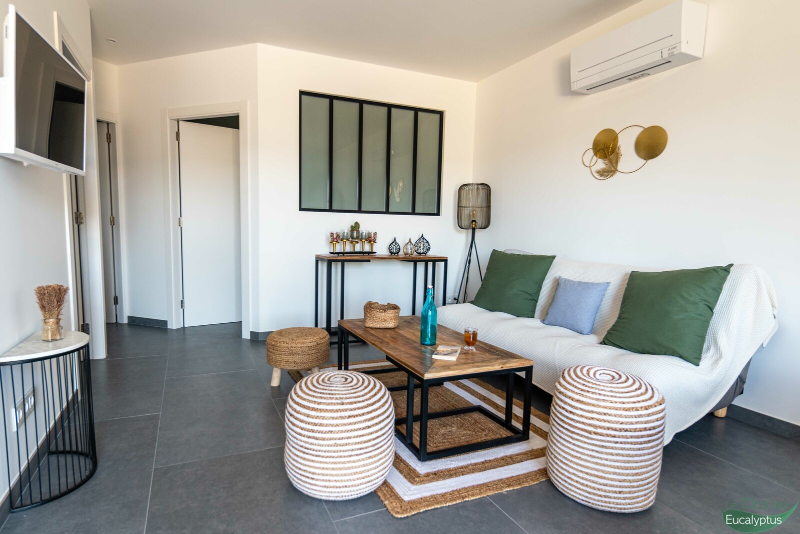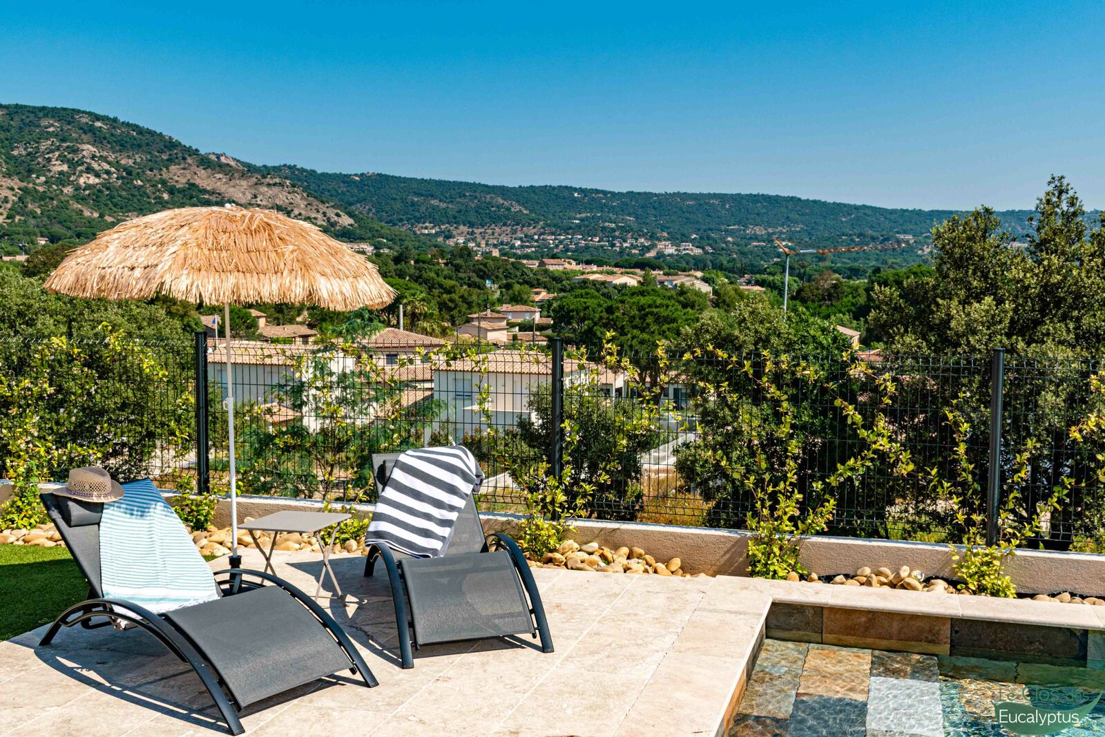 Achevé en 2021, cet appartement de deux chambres dispose d’une grande terrasse en rez-de-jardin avec vue imprenable sur les collines. Il bénéficie d’un équipement moderne et d’une décoration contemporaine soignée. À votre arrivée, les lits sont faits et le linge de toilette ainsi que le linge de cuisine sont fournis.
