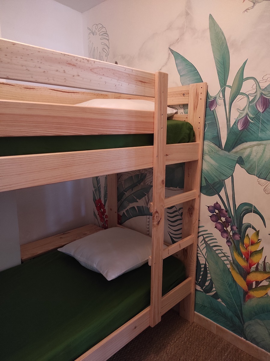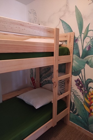 A côté, vous trouverez un coin nuit fermé par une porte (pas de fenêtre) équipé de 2 lits superposés en 80X190 pour accueillir 2 personnes.