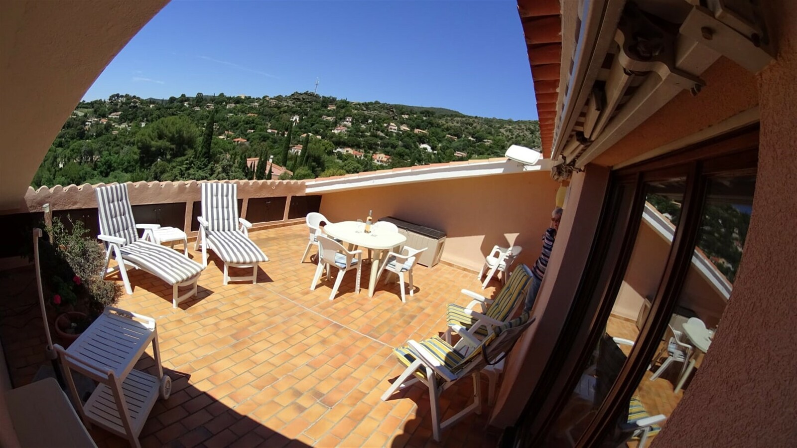 Idéalement situé dans le centre de Rayol Canadel sur Mer, appartement de 2 chambres avec de fantastiques vues dégagées sur la mer Méditerranée et les îles d'or. Parking fermé avec parking privé. Appartement accessible par un escalier au 2ème étage. La résidence se trouve à 400 mètres de la plage de Rayol. L'appartement est équipé d'une nouvelle cuisine avec des appareils tels qu'une plaque à induction, un four et un lave-vaisselle. La très spacieuse terrasse de 35 m2 offre un espace pour des chaises longues, une table et des chaises. La chambre dispose d'une nouvelle climatisation très silencieuse. La salle de bain complètement renouvelé fin 2023. Draps et linge à payer à l'arrivée(€90)L' arrivée et départ sont fait par un couple de gestion (disponible pendant votre séjour)