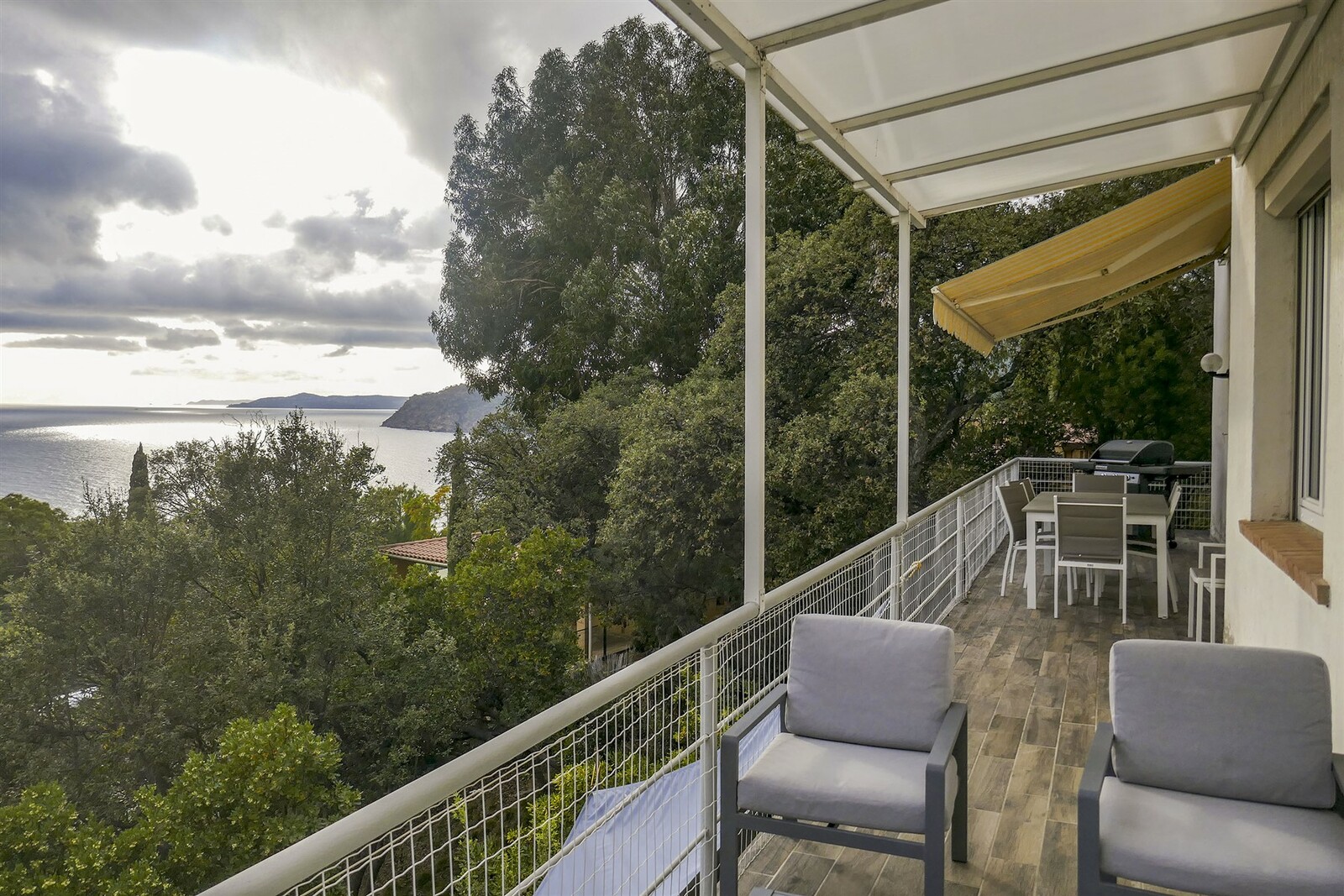 Etage indépendant de 80m² dans une maison située à 750m de la plage du Canadel par un sentier.Il est composé d'un salon avec vue mer donnant sur une terrasse au-dessus du jardin, d'une cuisine neuve toute équipée; d'une salle de bain, d'un WC et de 3 chambres.