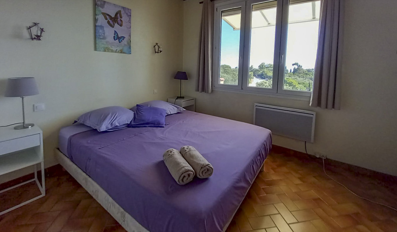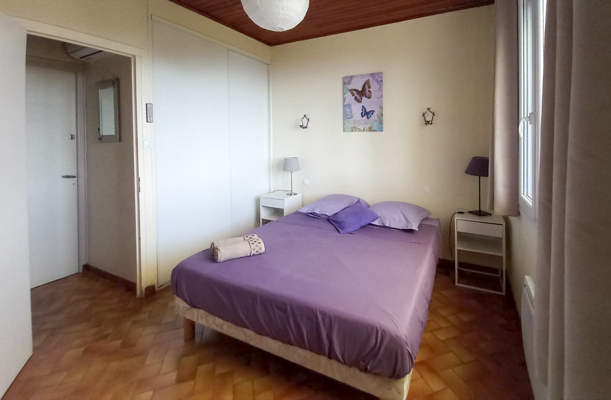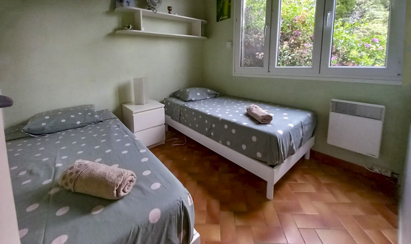 Etage indépendant de 80m² dans une maison toute équipée avec vue mer donnant sur une terrasse au-dessus du jardin.