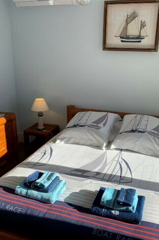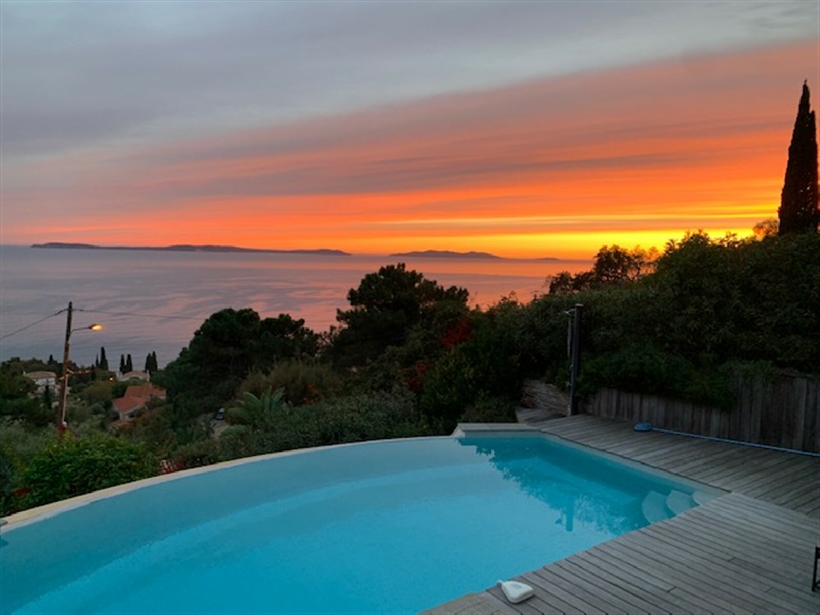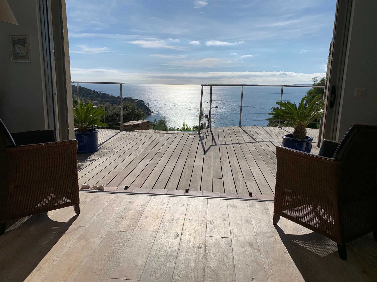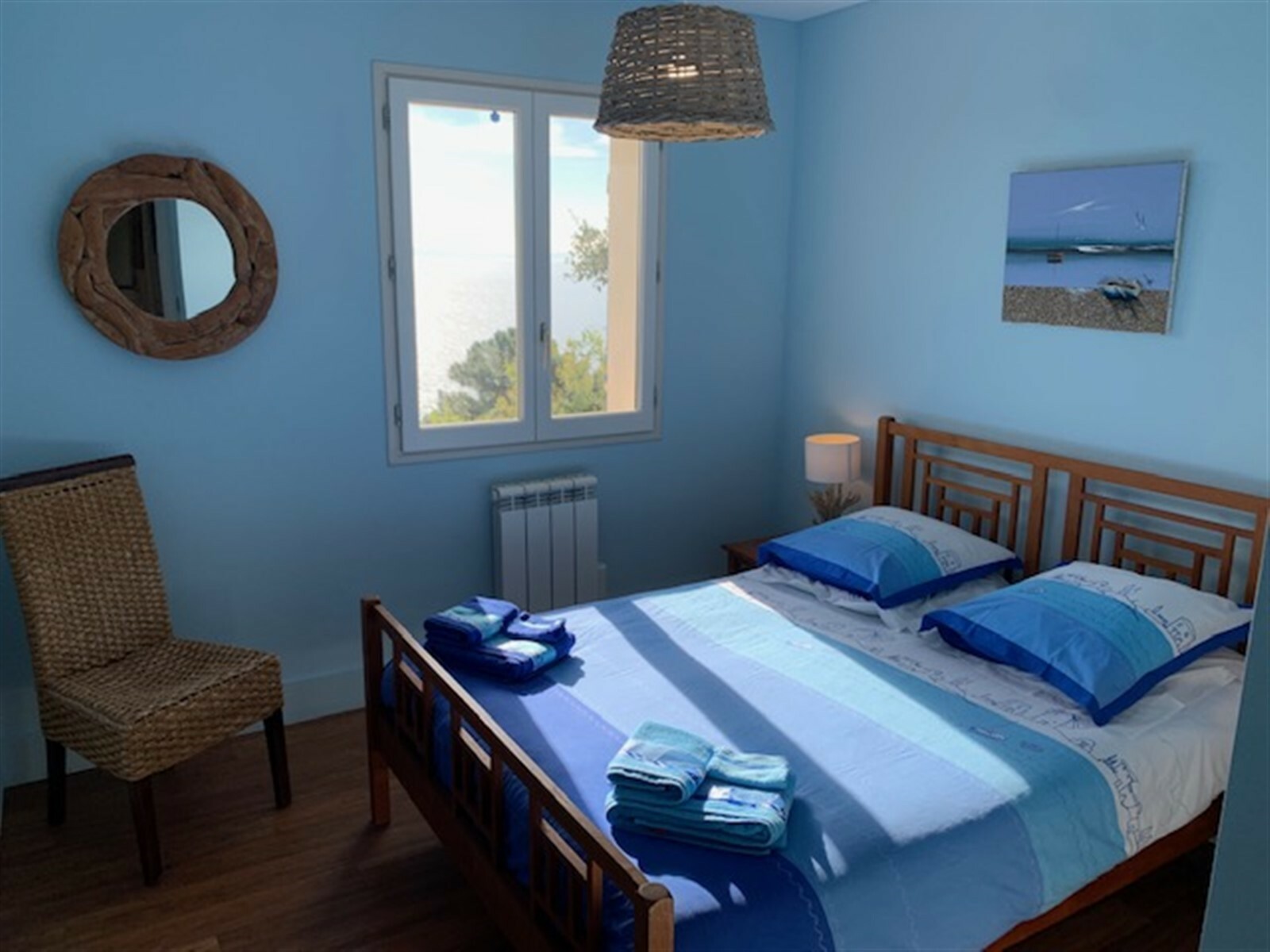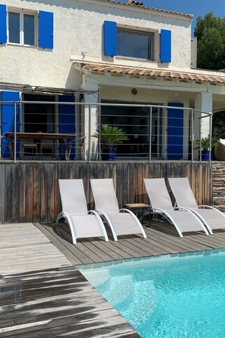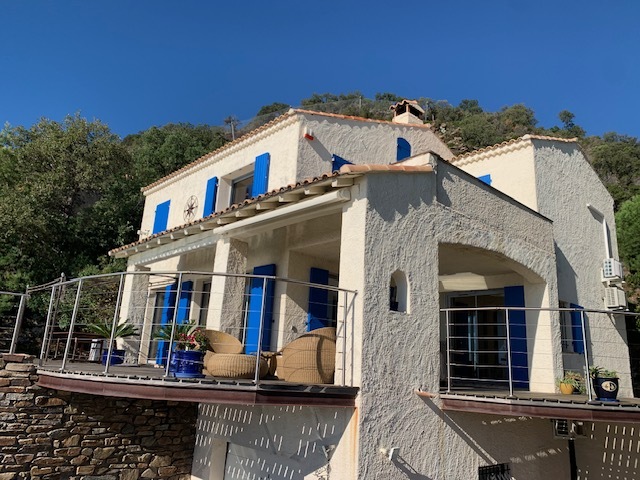 Située au calme dans une impasse.180m², exposée Sud, sur 2100m² de colline boisée, grande terrasse et solarium, pas de vis-à-vis, proximité plage (400m, 800m par route).