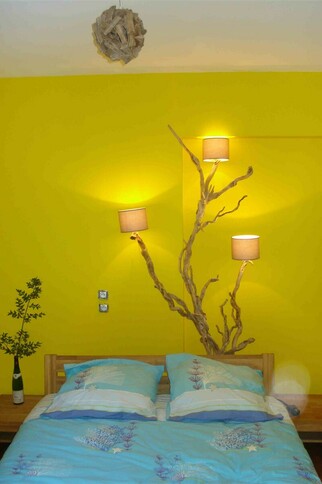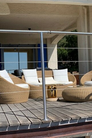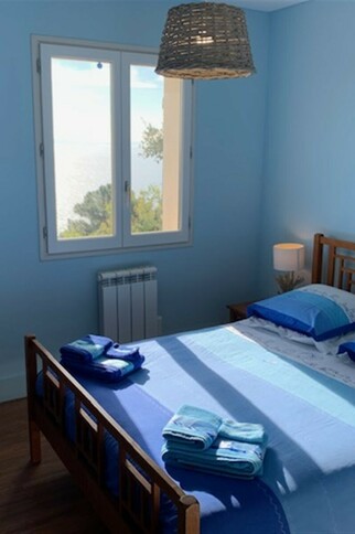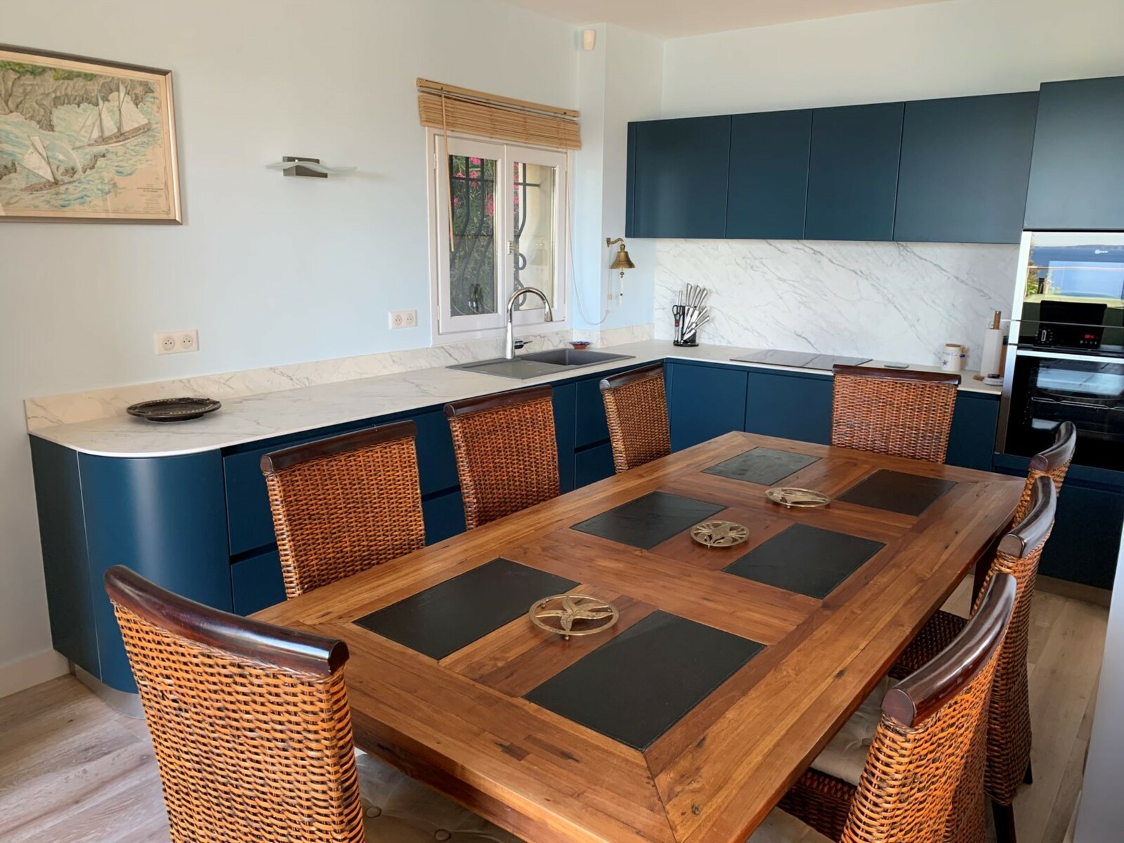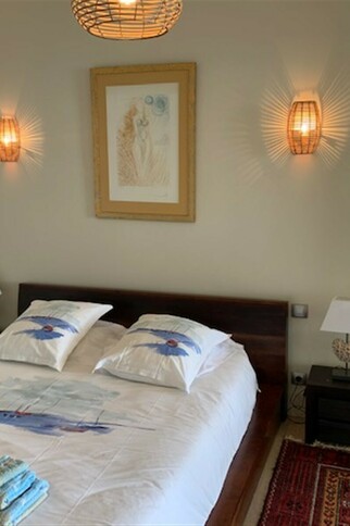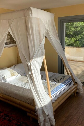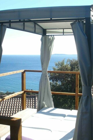 Plus : sur les hauteurs de la villa en colline dans un écrin de verdure, un lit d'extérieur à baldaquin sur terrasse entre ciel et terre avec vue mer. 4 kayaks de mer à disposition, palmes, masques et tubas.