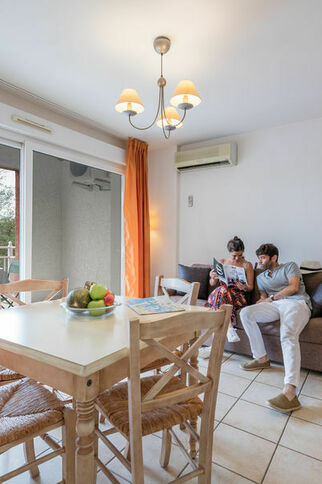 Parfaitement aménagés pour vous accueillir, les logements sont équipés avec kitchenette fonctionnelle (plaque vitrocéramique, micro-ondes, lave-vaisselle, réfrigérateur, grille-pain, bouilloire,..) salles de bain avec sèche-serviettes, toilettes séparés, salon avec canapé convertible et chambres. Tous les appartements sont dotés de la climatisation dans le séjour et dans une des chambres.