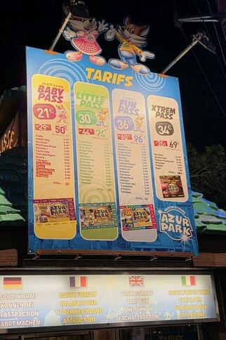 Azur Park vous propose 35 attractions dont une quinzaine pour enfants pour émerveiller petits et grands. 4 pass sont à disposition pour des tarifs attractifs. Le parc vous propose 2 mini-golf, des points de restauration et tout pour une soirée réussie.