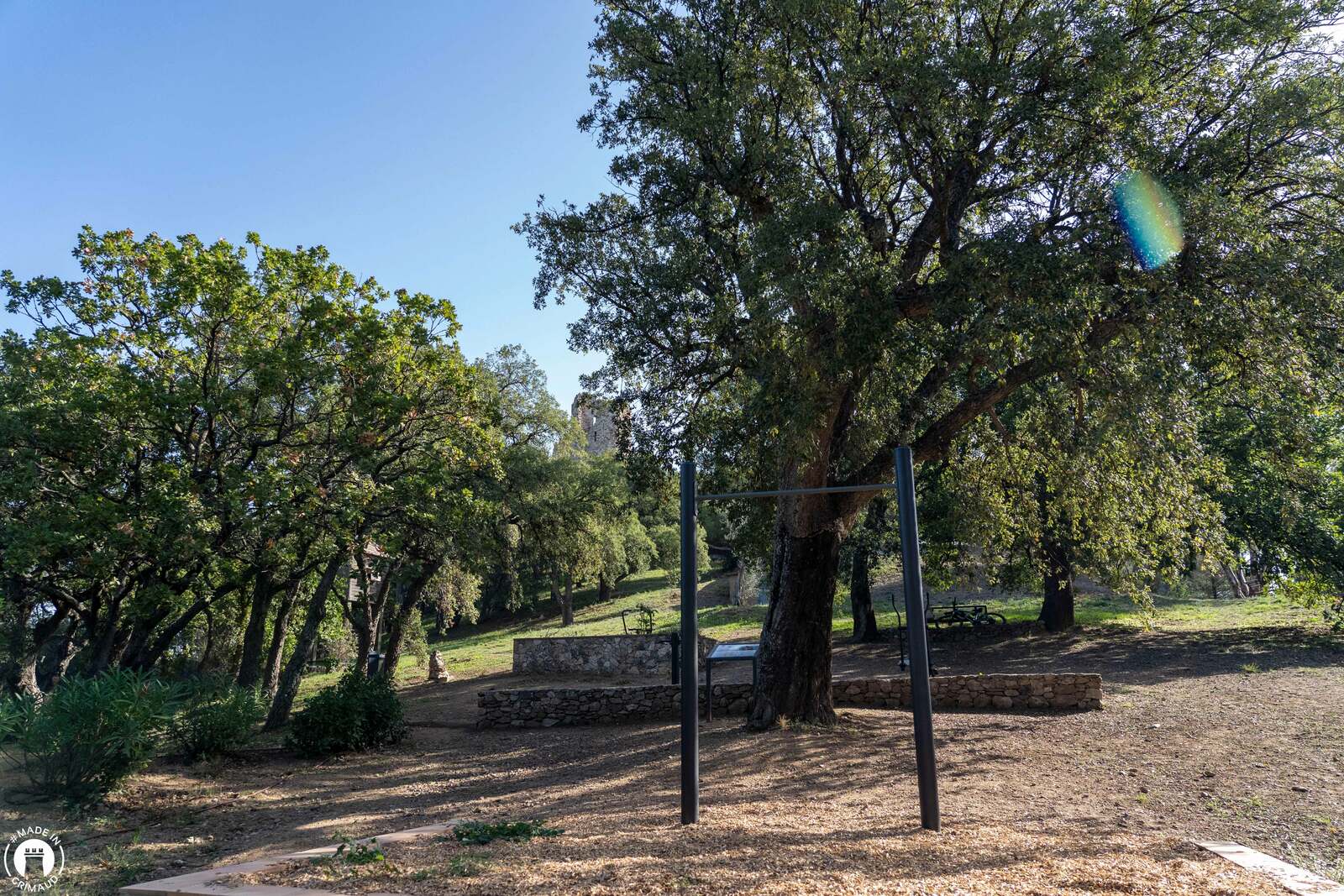 Retrouvez l'aire de fitness du château, en extérieur, pour vous entraîner à tout moment à Grimaud.