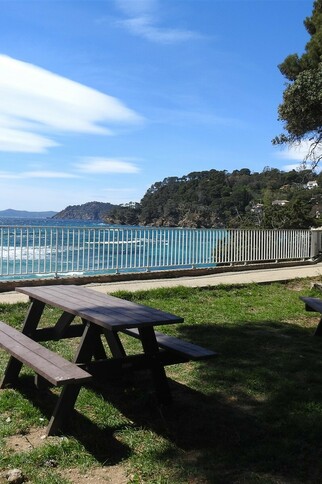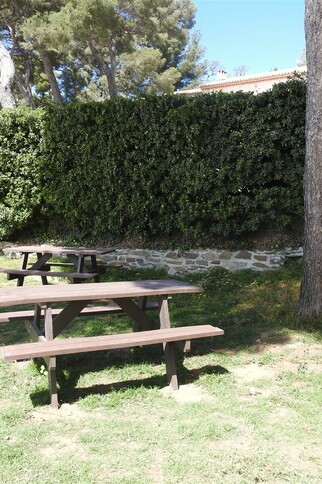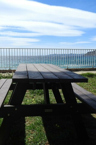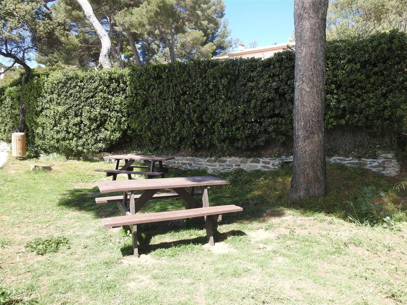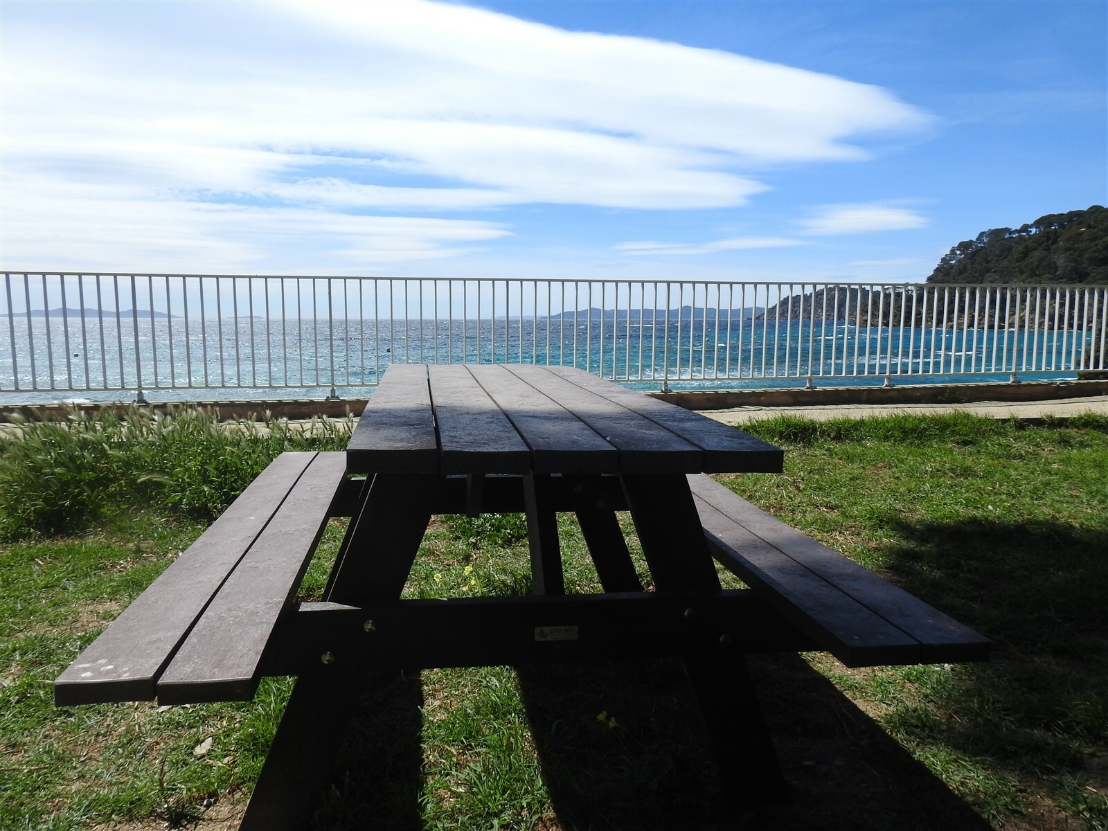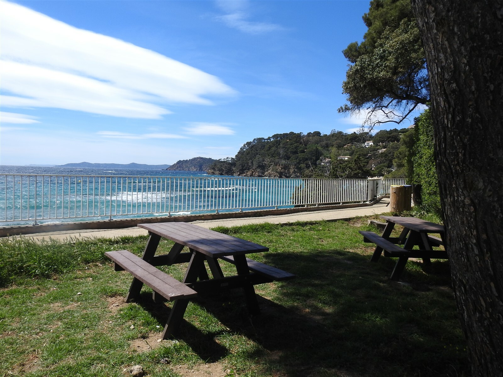 Aire de pique-nique proche de la plage Rayol Est face à la mer et les îles d'or...deux tables et bancs.