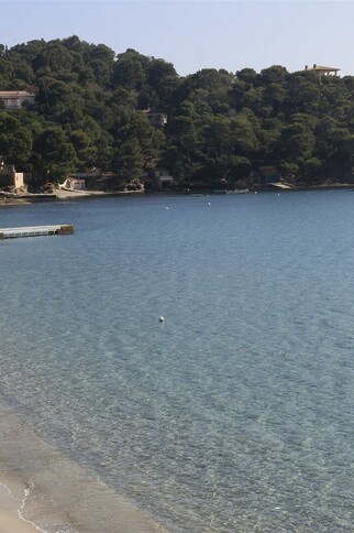 Son sable délicat se prolonge dans une eau bleu céleste où les poissons se régalent dans la posidonie.Elle est séparée en deux zones par un poste de secours. Sur la droite, une stèle commémore le débarquement des forces alliés et des commandos d’Afrique la nuit du 15 août 1944.