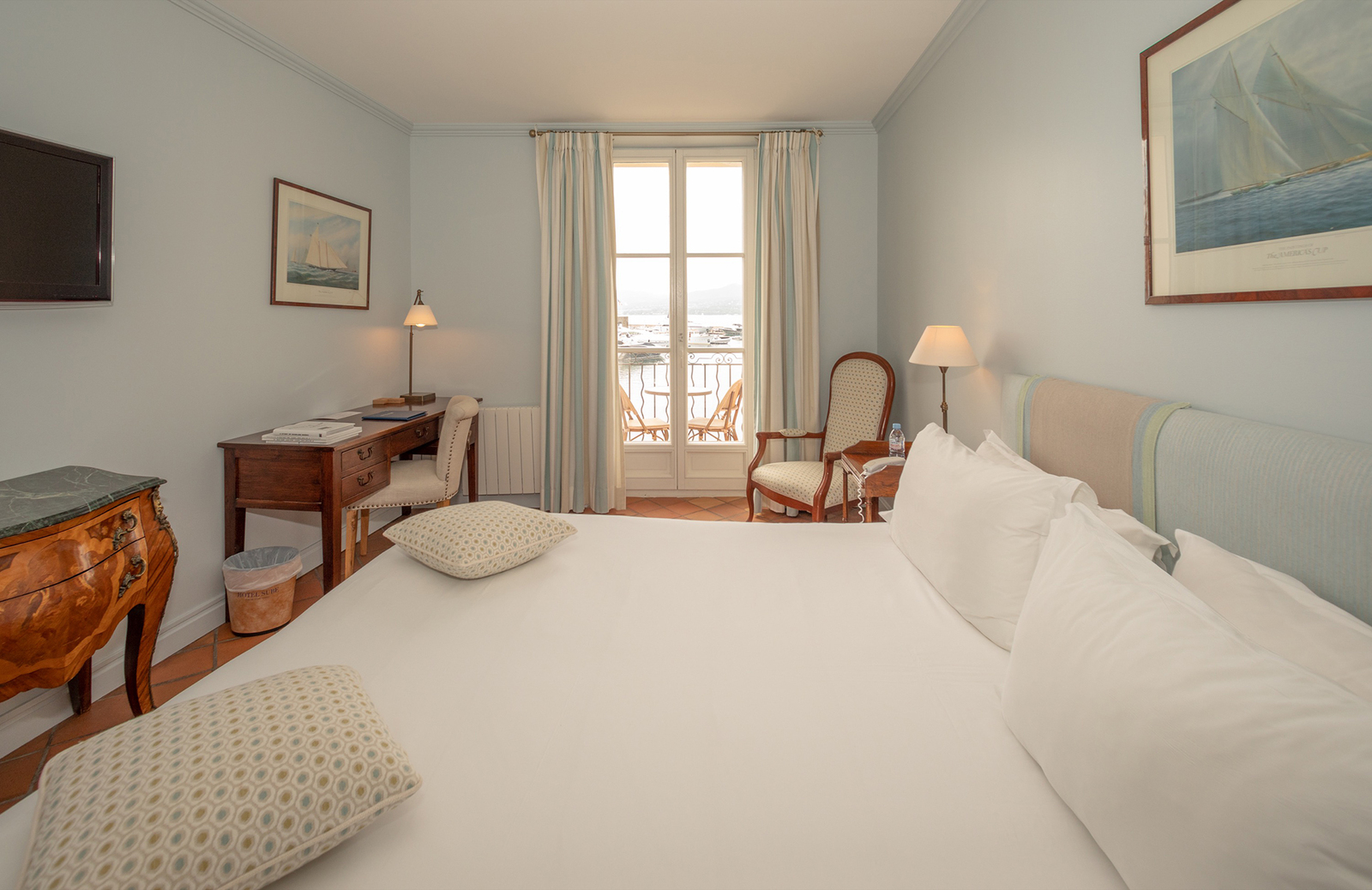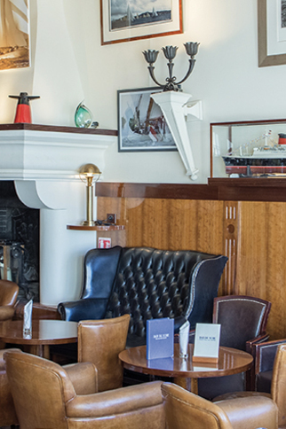 Au premier étage, bar anglais, cheminée, rendez-vous des marins, lumières tamisées, décor raffiné Art Déco, le Bar Anglais en acajou et ses maquettes de bateaux rappellent la prestigieuse compétition nautique de Saint-Tropez, «Les Voiles».