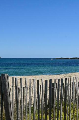 A l'est de Sainte-Maxime, la plage de la Nartelle est une longue plage de sable idéale pour les enfants avec un cadre exceptionnel.