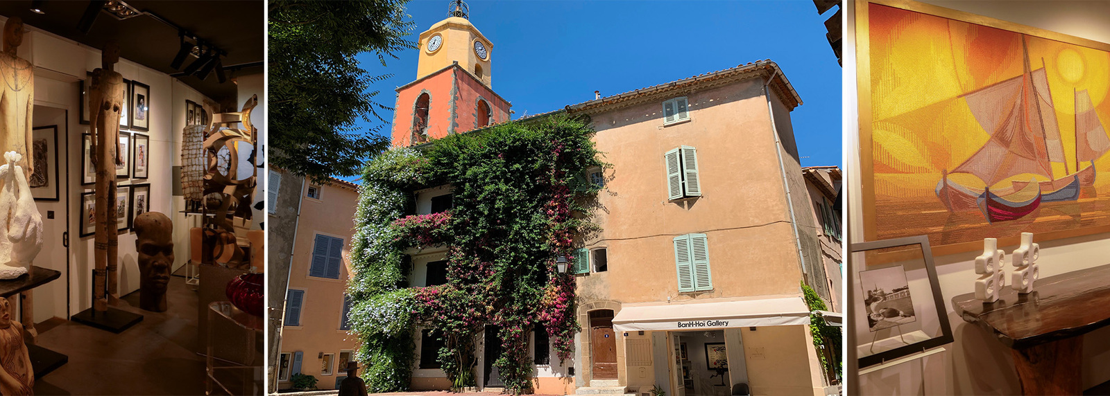 Les Galeries BanH-Hoi invitent à une immersion dans l’univers de l’art sous toutes ses formes. Entre tableaux, lithographies, sculptures, photographies, mobilier et antiquités, elles proposent un savant mélange d’art moderne, contemporain, africain et de street art. Les visiteurs peuvent y découvrir notamment les œuvres de Thibault de la Lance, artiste peintre installé sur place, qui a fait de la galerie son atelier. Présent au quotidien, il accompagne le public à travers les créations exposées et partage avec passion sa vision artistique. Un lieu vivant, éclectique et inspirant, à l’image de Saint-Tropez.