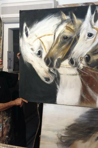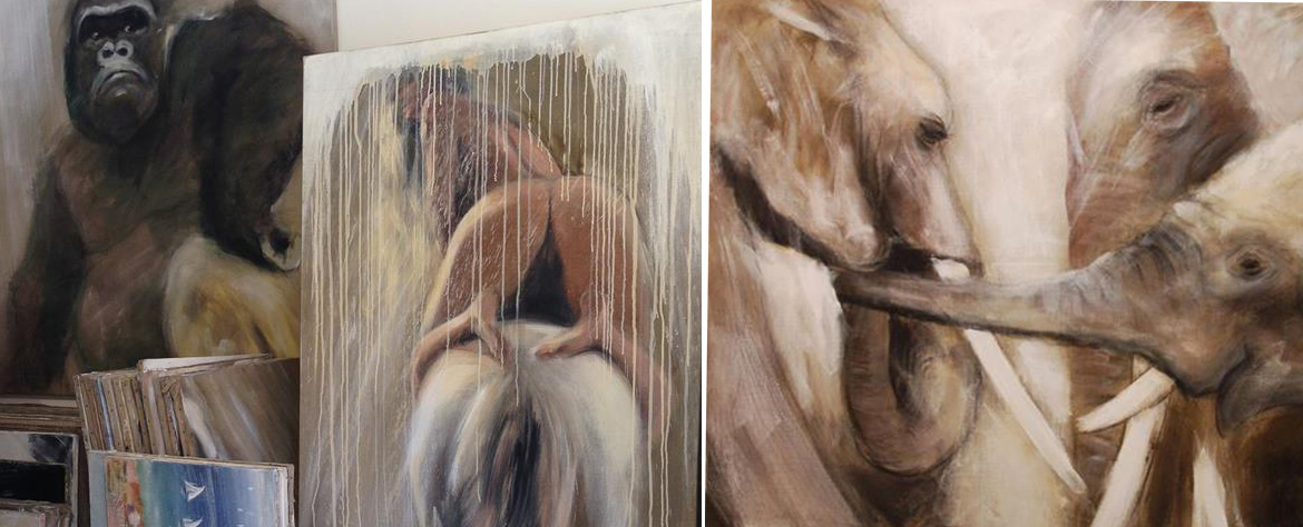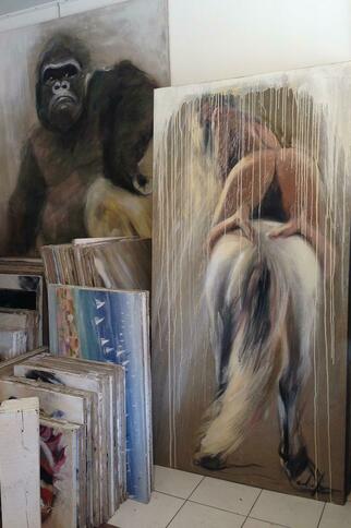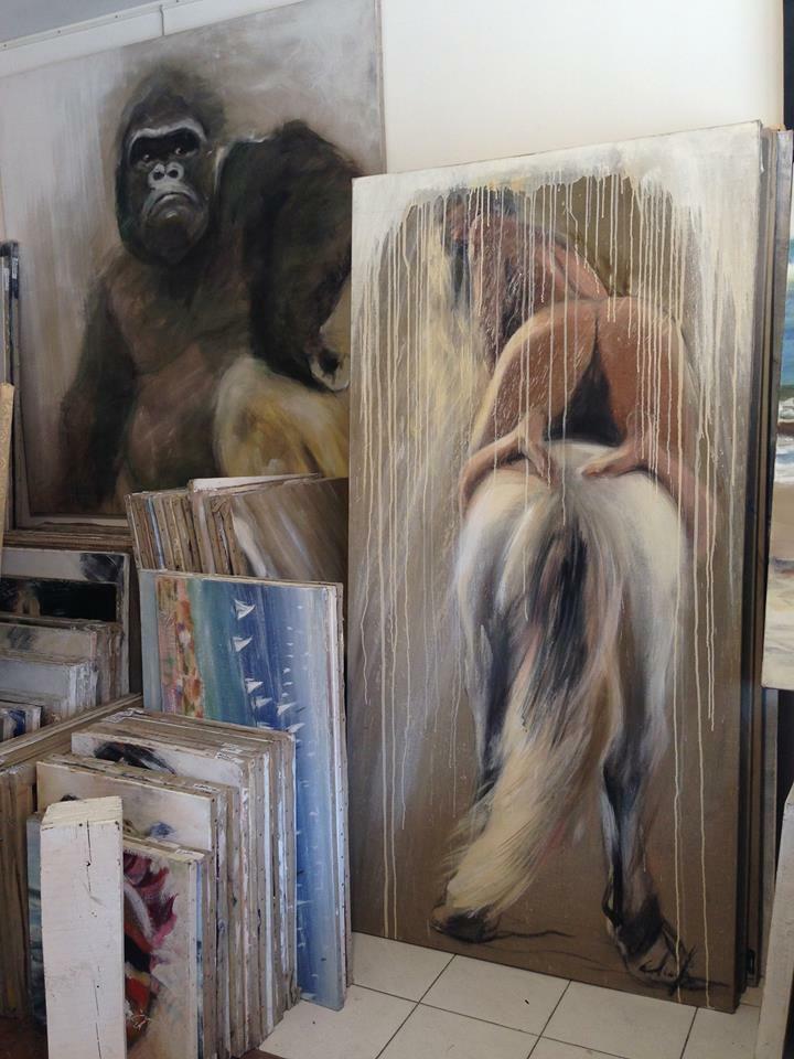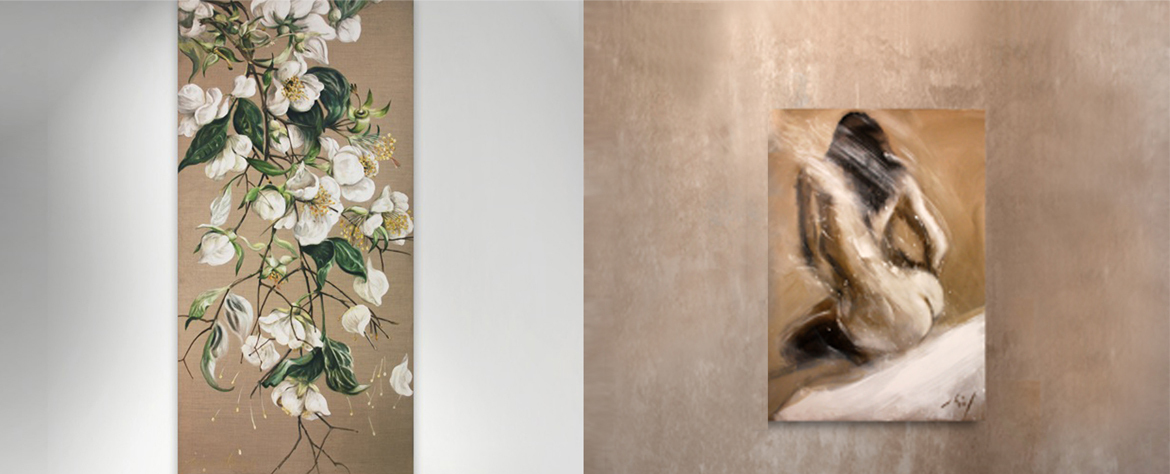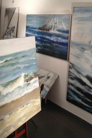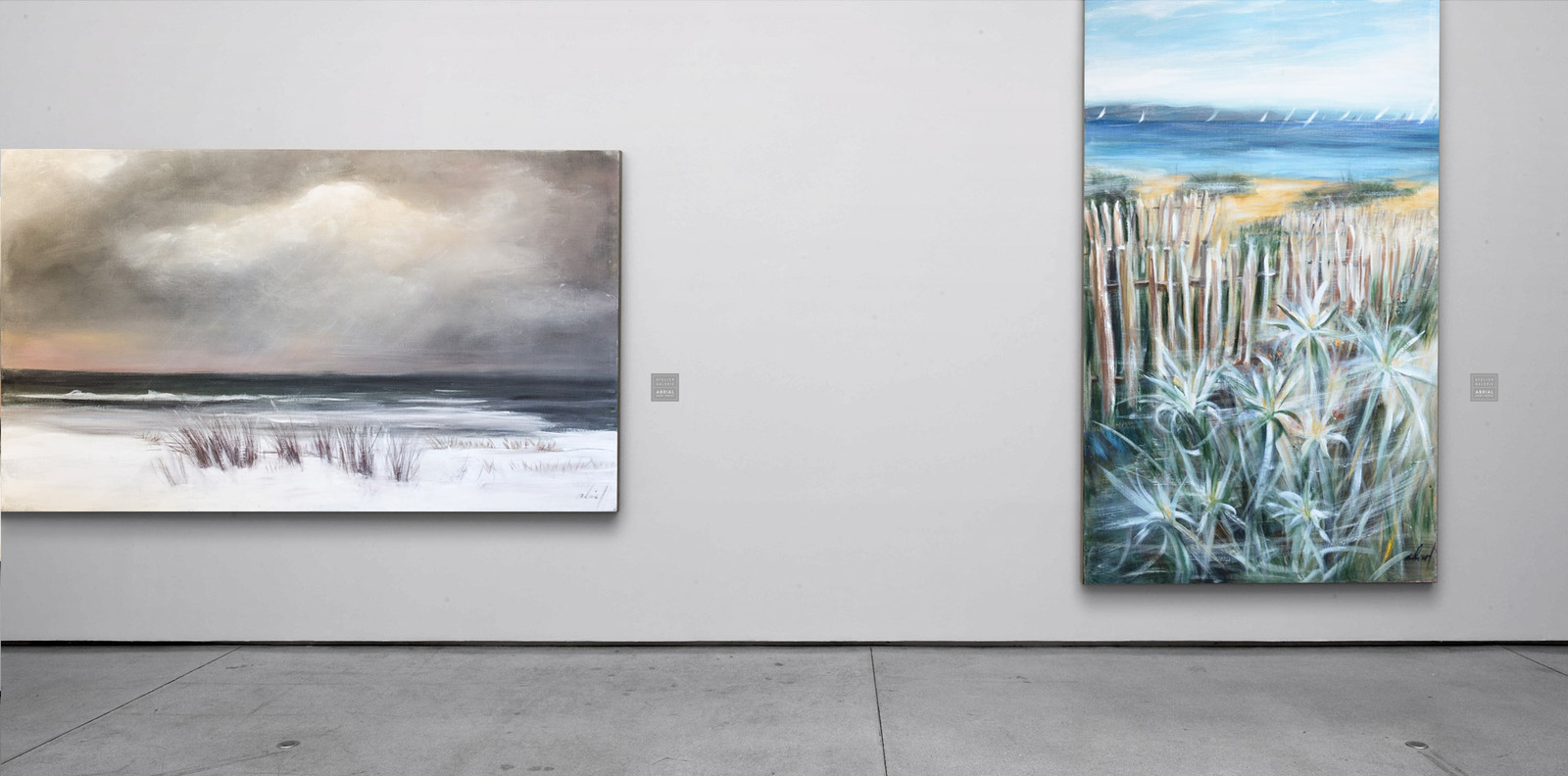 Chacun son style, chacun son mur à la galerie. Féminité et audace se dégagent des peintures de Josiane, tandis que Gérard, masculinité, jette du blanc sur ses toiles en utilisant le style «sfumato» dynamique : mer, animaux sauvages, paysages de son pays – golfe de Saint-Tropez.