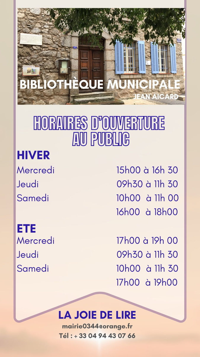 La bibliothèque du village, gérée par l’association bénévole « La Joie de Lire » , est ouverte toute l’année. Elle dispose d’un choix très varié de livres, albums, bande dessinées, pour tous les âges mais également d’une session propre aux enfants et d’un rayonnage en emprunt-libre. Des animations gratuites sont organisées presque chaque mois et l’accueil de groupes scolaires a lieu chaque semaine.