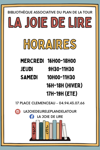 Toute l'année le mercredi de 16h à 18h. Le jeudi de 9h30 à 11h. Le samedi de 10h à 11h30 et de 16h à 18h.