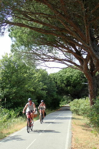 À la sortie de Ste Maxime, on retrouve la piste cyclable du Train des pignes non jalonnée qui assure une continuité jusqu’au camping de St-Aygulf.