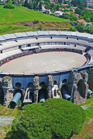 À Fréjus, à la fin de la piste cyclable rue des Batteries, prendre à gauche puis en face la rue des Campanettes. Et successivement à droite l’impasse Georges Guynemer prolongée en rue Georges Guynemer. Obliquer à gauche pour retrouver l’avenue d’Argens (D559) et tourner à droite dans cette avenue. Au rond-point avec le Bd. de la mer (D98B), suivre Fréjus Centre (3e sortie).