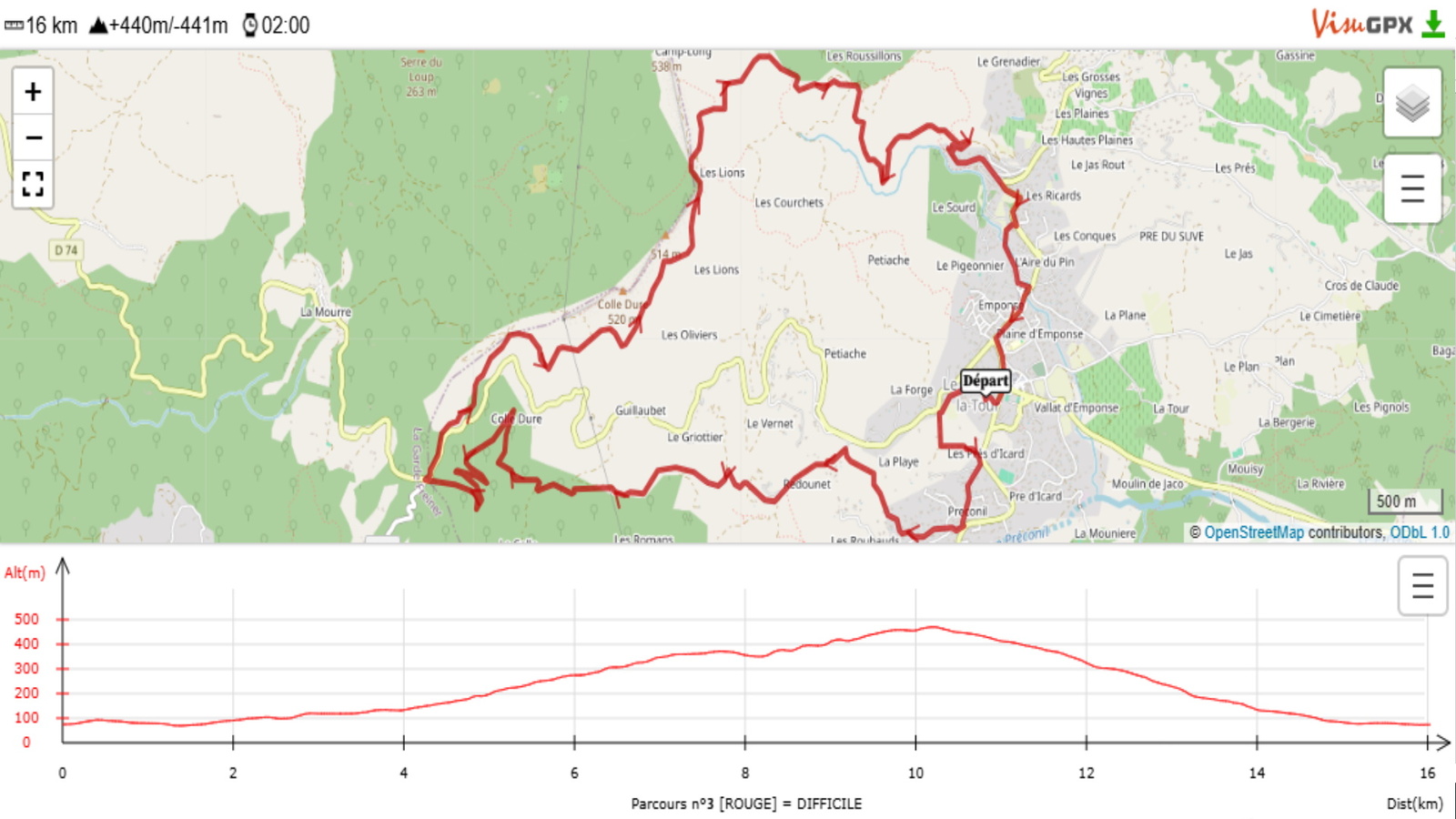 Boucle A/R - Niveau Rouge / Difficile *** - Durée estimée 02 : 00 mn - Bon dénivelé