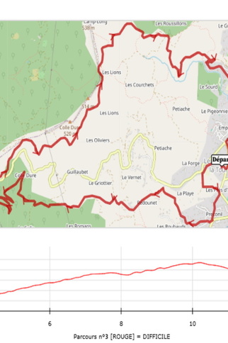 Vous prendrez un peu de route et passerez entre les résidences avant d’attaquer une longue montée sur une piste DFCI.Boucle A/R - Niveau Rouge / Difficile *** - Durée estimée 02 : 00 mn - Bon dénivelé