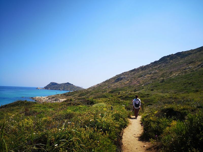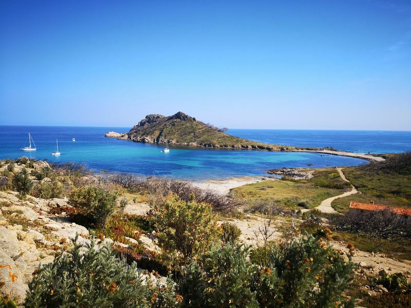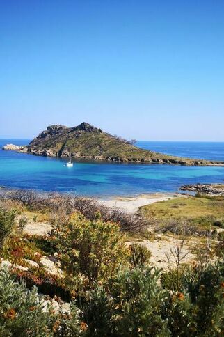 Continuer sur ce sentier, et à la pointe de la Douane, prendre le sentier montant vers l'isthme, pour atteindre la récompense... Sur ce petit sommet se tient une ancienne tour de guet spectaculaire, vue à 360°, de cap Camarat à l'Est avec son sémaphore qui surveille le golfe de Saint-Tropez aux îles de Porquerolles à l'Ouest avec au premier plan le domaine viticole de la Bastide Blanche et le Cap Lardier.
